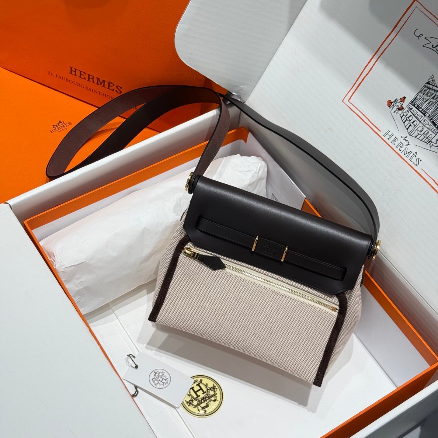 HM Mini Herbag Gold Buckle 20 Beige Canvas and Hunter Cowhide 243221