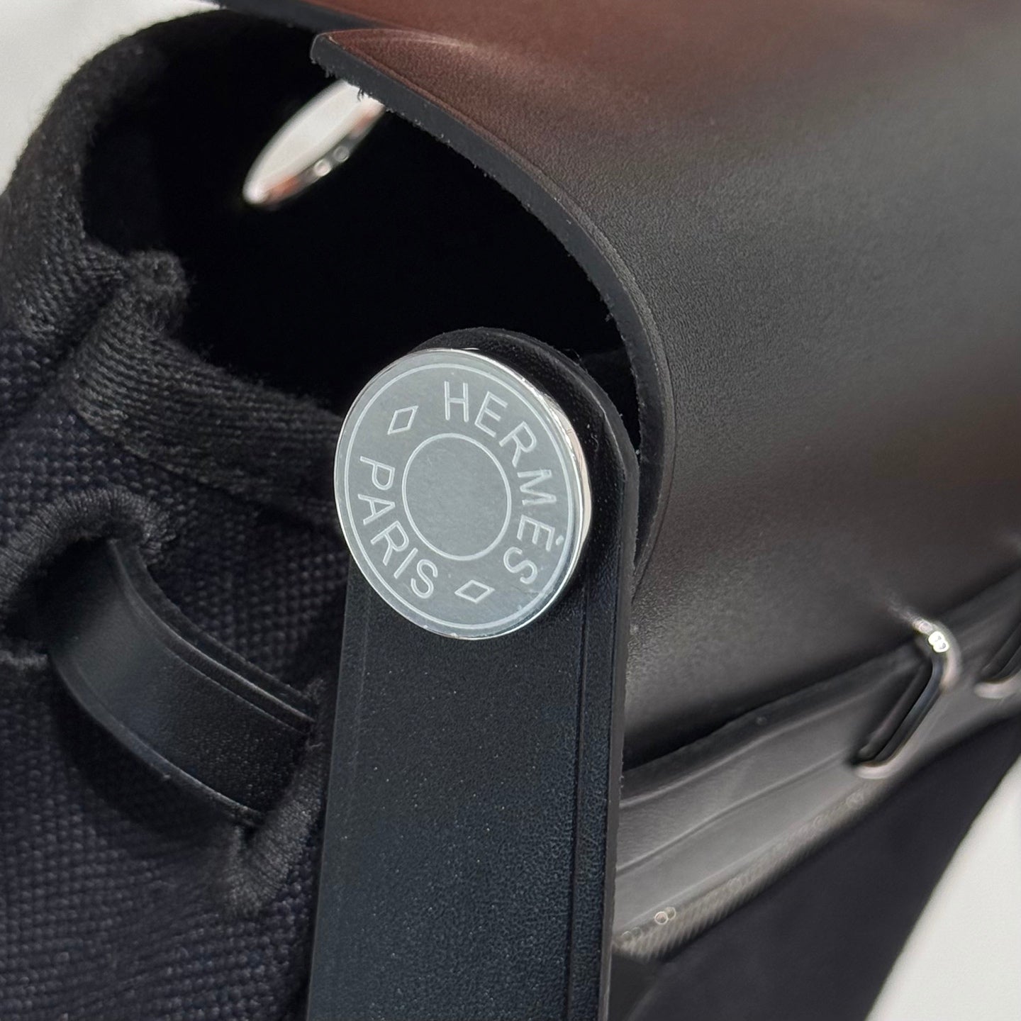 HM Mini Herbag Silver Buckle 20 Dark Brown Canvas and Hunter Cowhide 243305