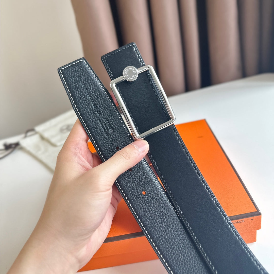 HM OSCAR BELT BUCKLE & REVERSIBLE BLACK AND ASH GREY LEATHER STRAP 38MM SILVER HARDWARE