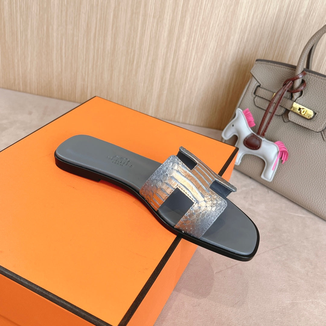 HM Oran Sandals Brown Sliver Calfskin 312774