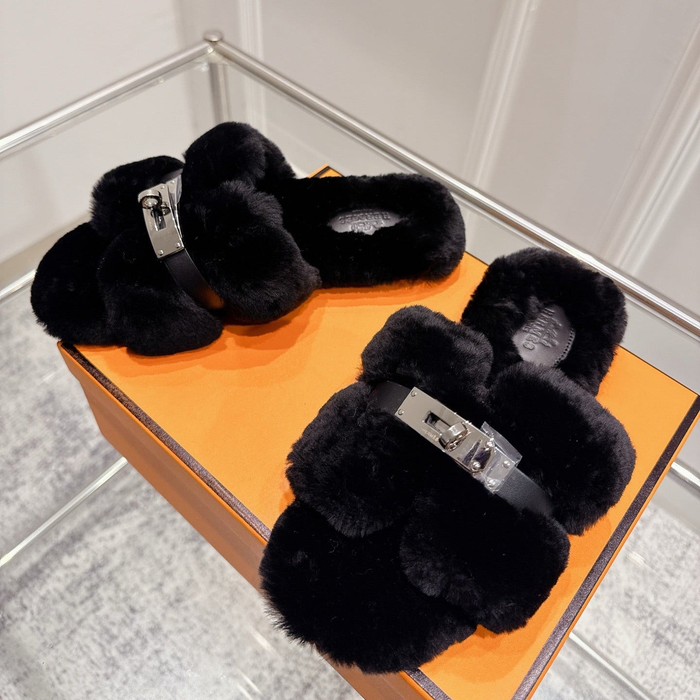 HM Oz Mule Black Mix White Suede Lined With Wool Fleece 961091
