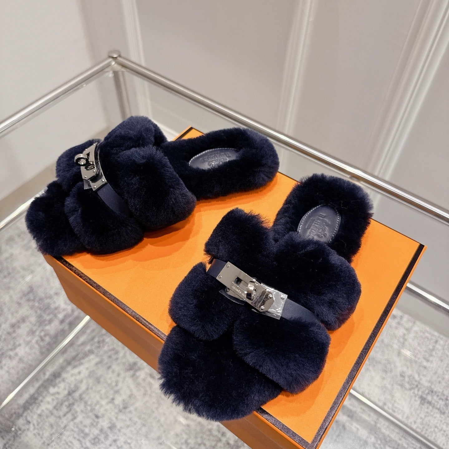 HM Oz Mule In Dark Pastel Blue Suede Lined With Wool Fleece 113199