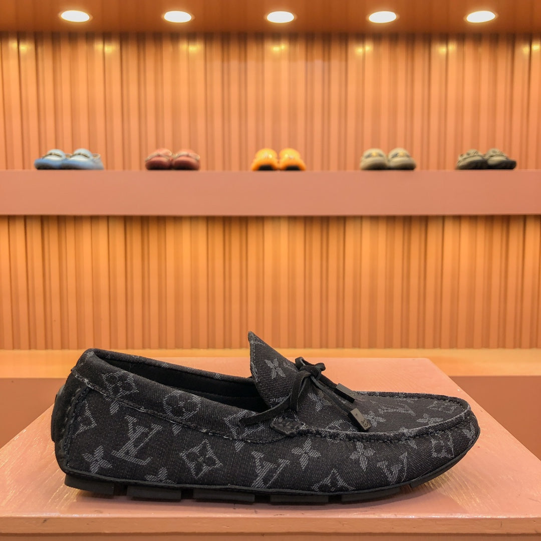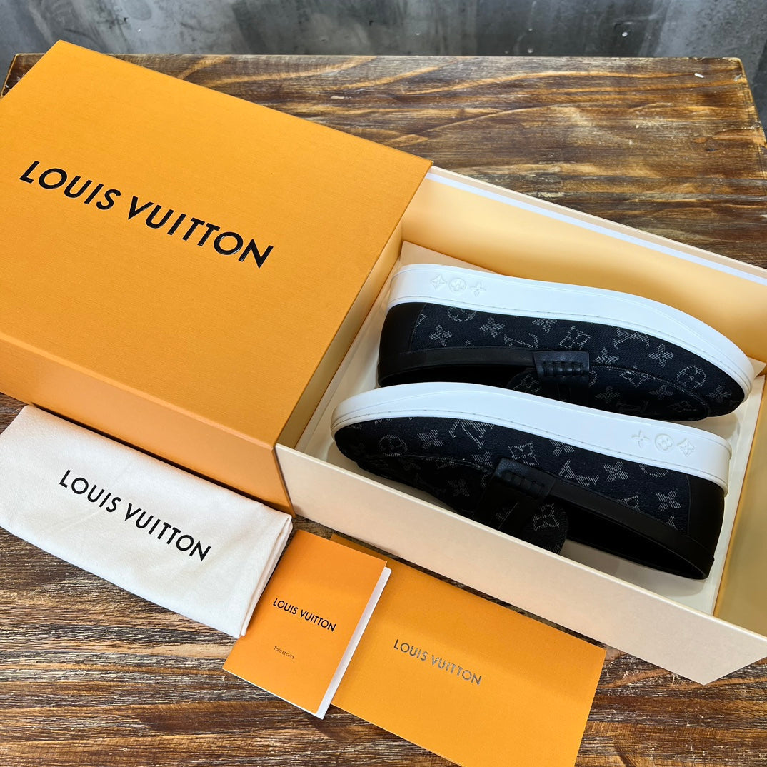 LV LOAFER IN BLACK MONOGRAM DENIM WITH BOW