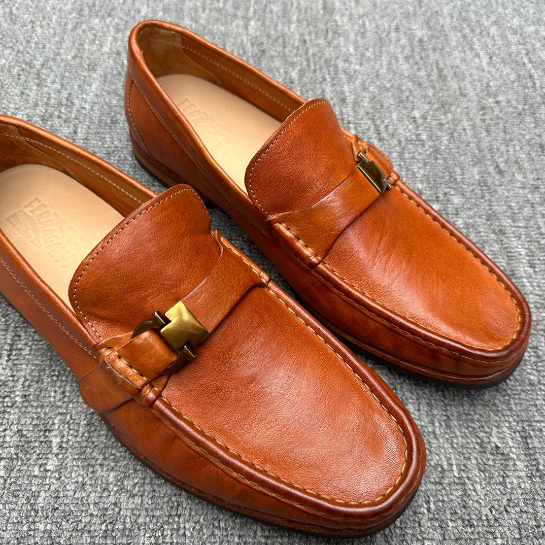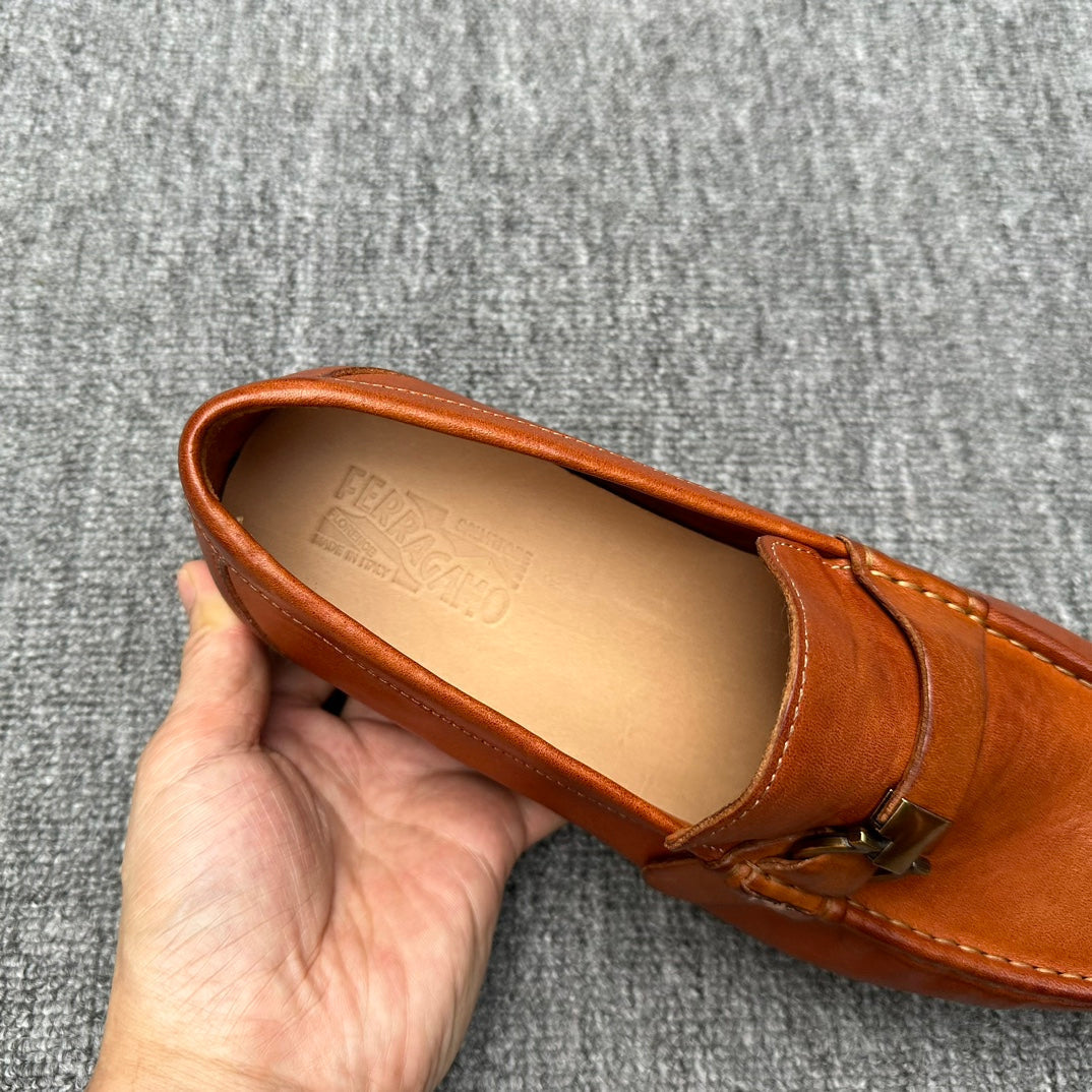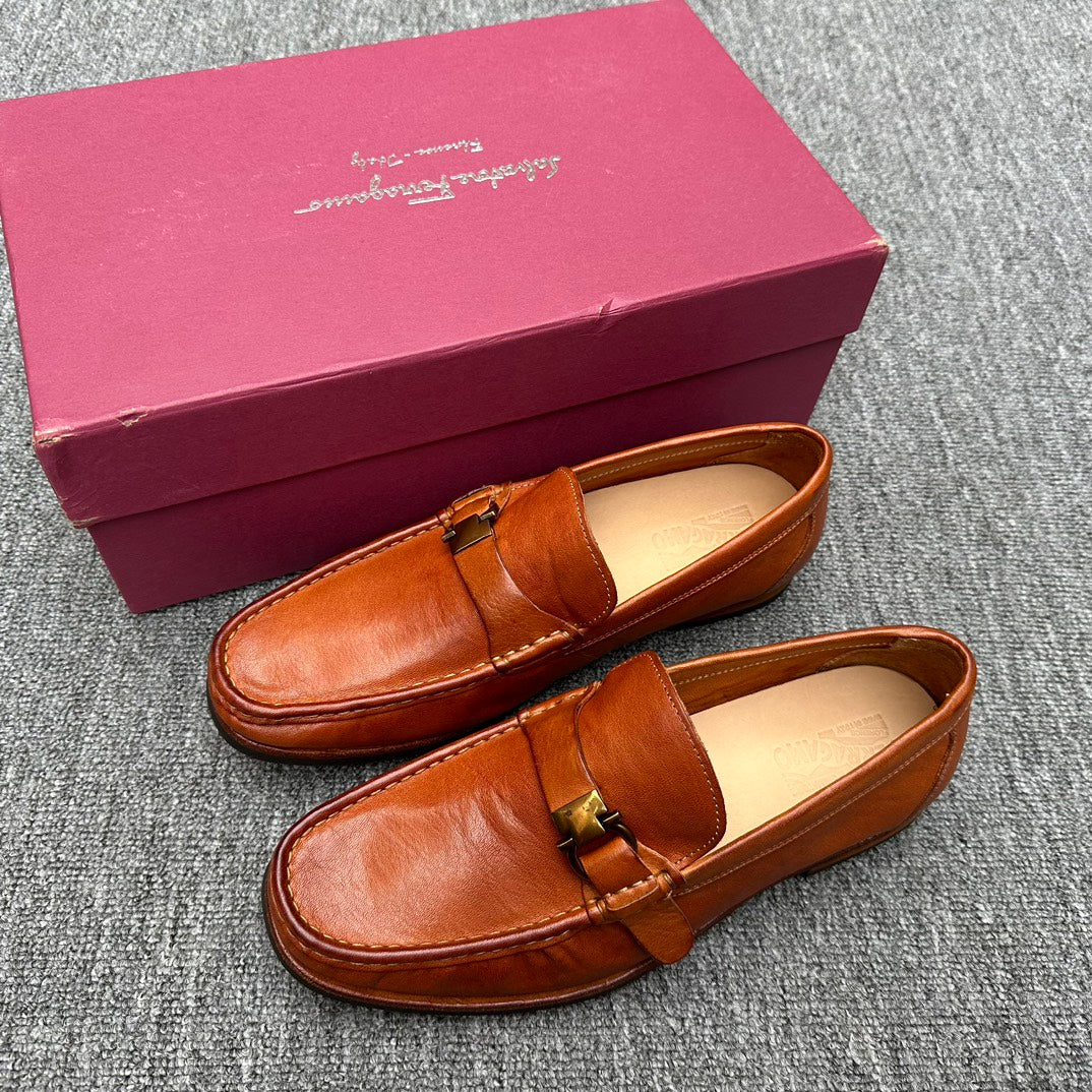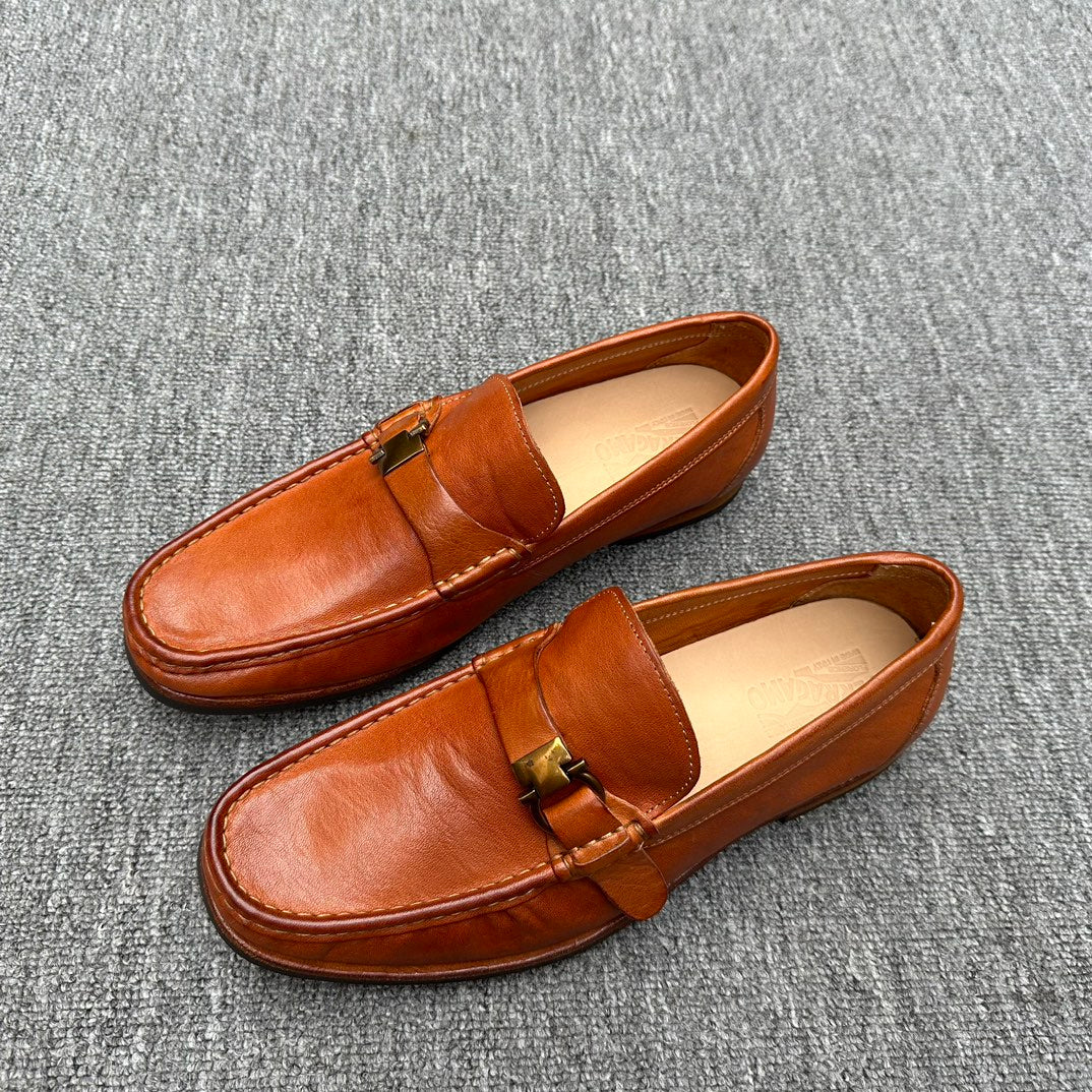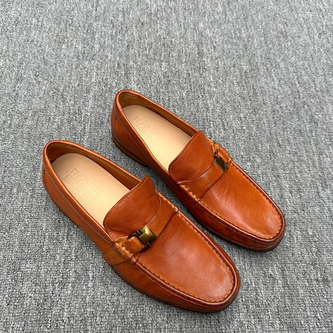 LV LOAFER IN CAMEL BROWN EMBOSSED CALFSKIN
