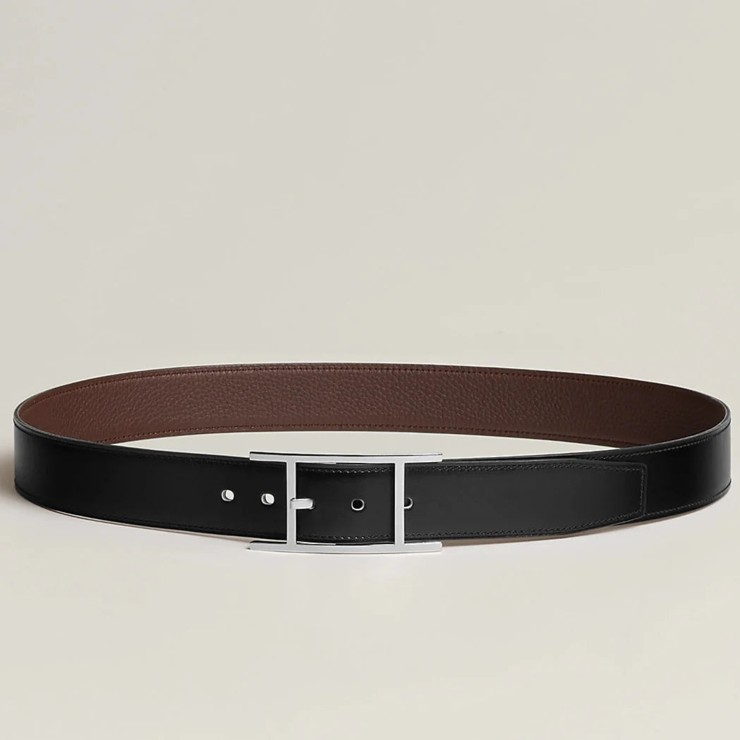 HM Silver H Buckle & Reversible 32mm Belt Black Ebony leather 124644