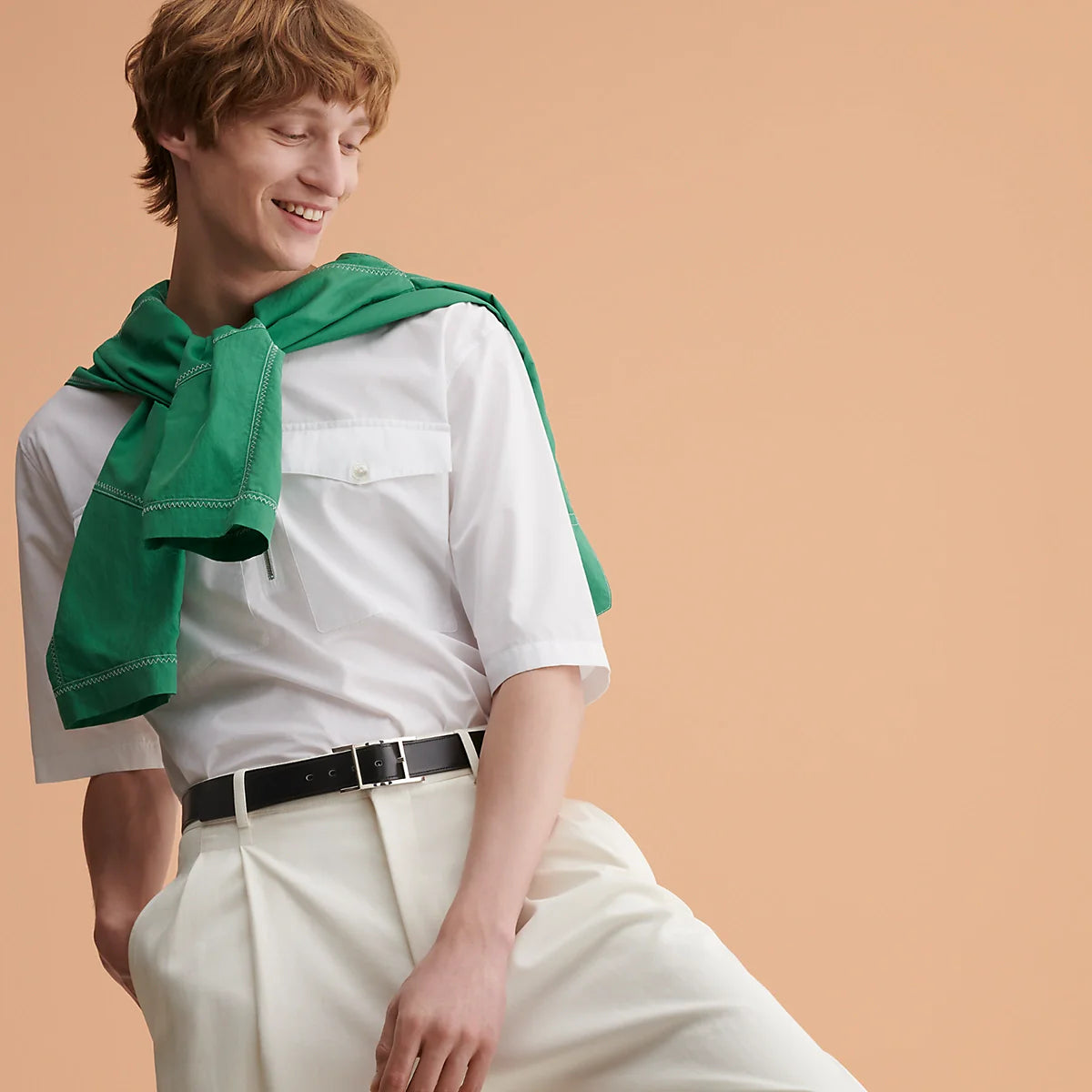 HM Silver Hadrien Reversible 38mm Belt Black Leather 188082