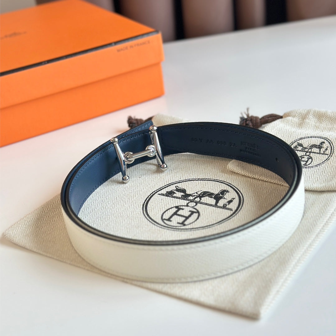 HM Silver Tube H Buckle Belt 38mm Meyer gray Leather 187782