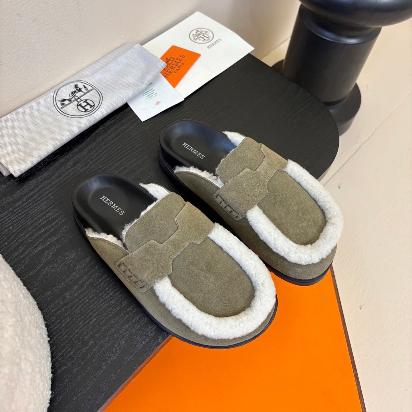 HM Slippers Classic Kelly Sliver Buckle Brown Wool 479617