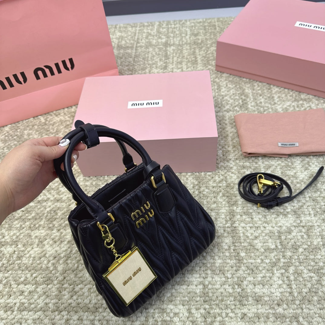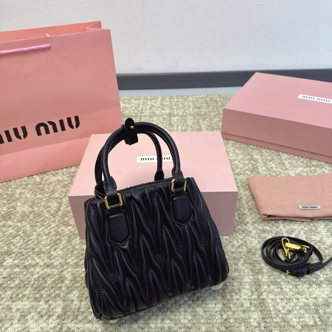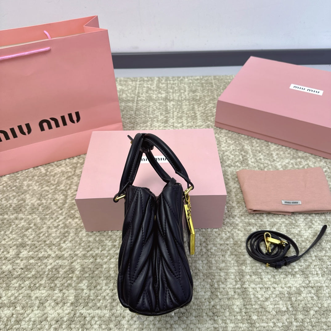 HOBO BAG 24 IN BLACK TRIANGULAR QUILTED PATTERN RE-NYLON