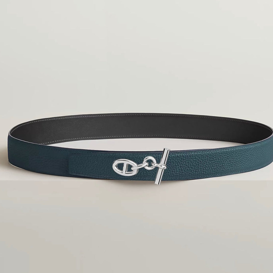HM Yachting Buckle Belt 32mm Prussian Blue Black Leather 187514