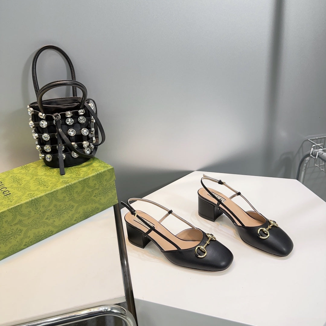 horsebit slingbacks pump 55mm black calfskin