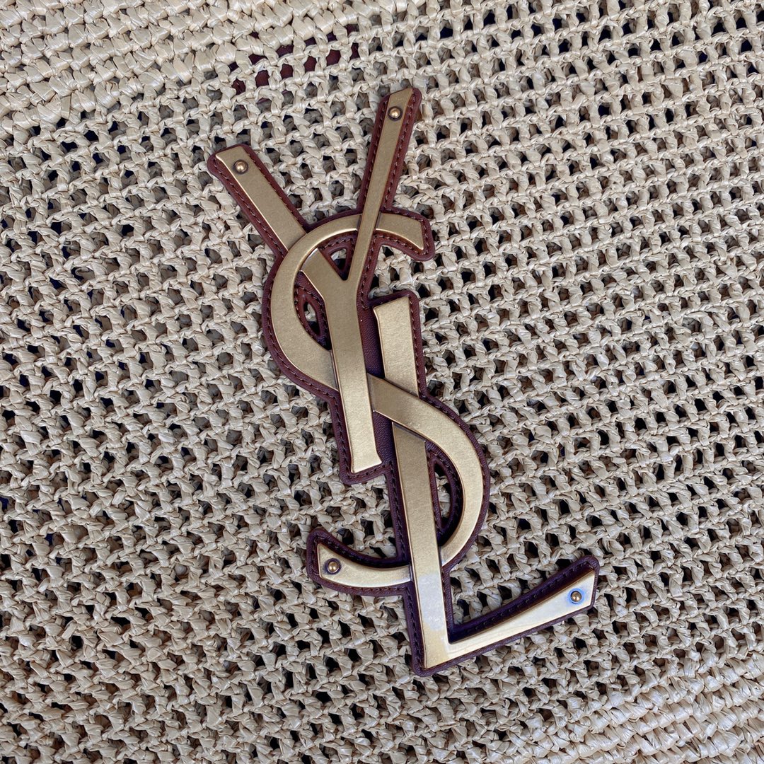 icare 58cm woven raffia brown calfskin