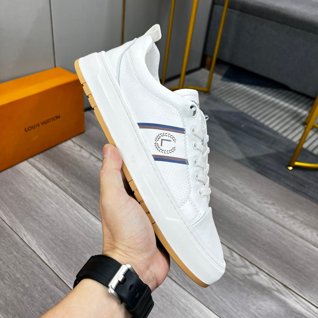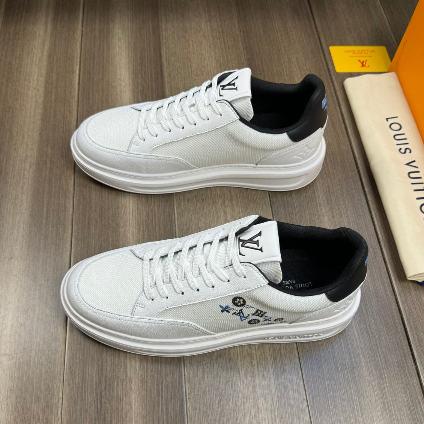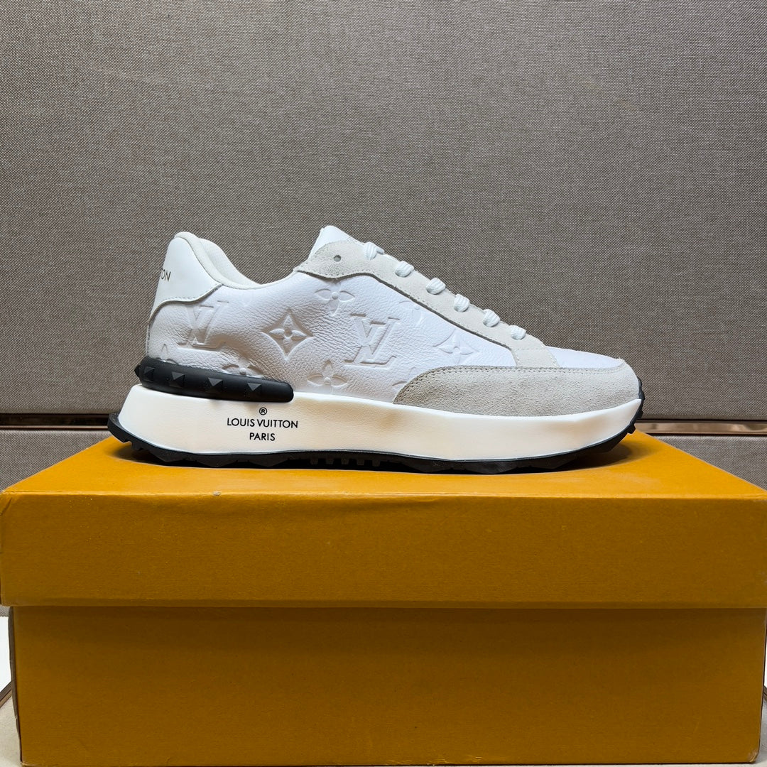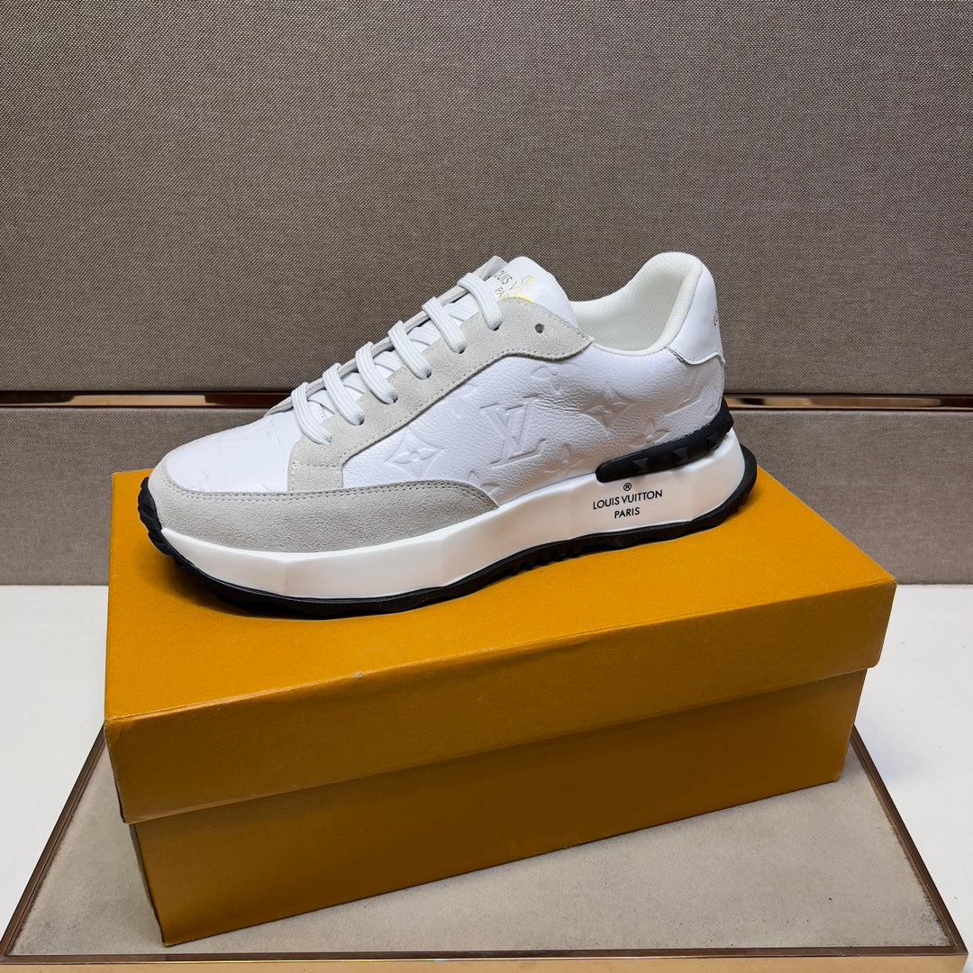 LV TRAINER SNEAKER WHITE EMBOSSED CALFSKIN AND GREY SUEDE
