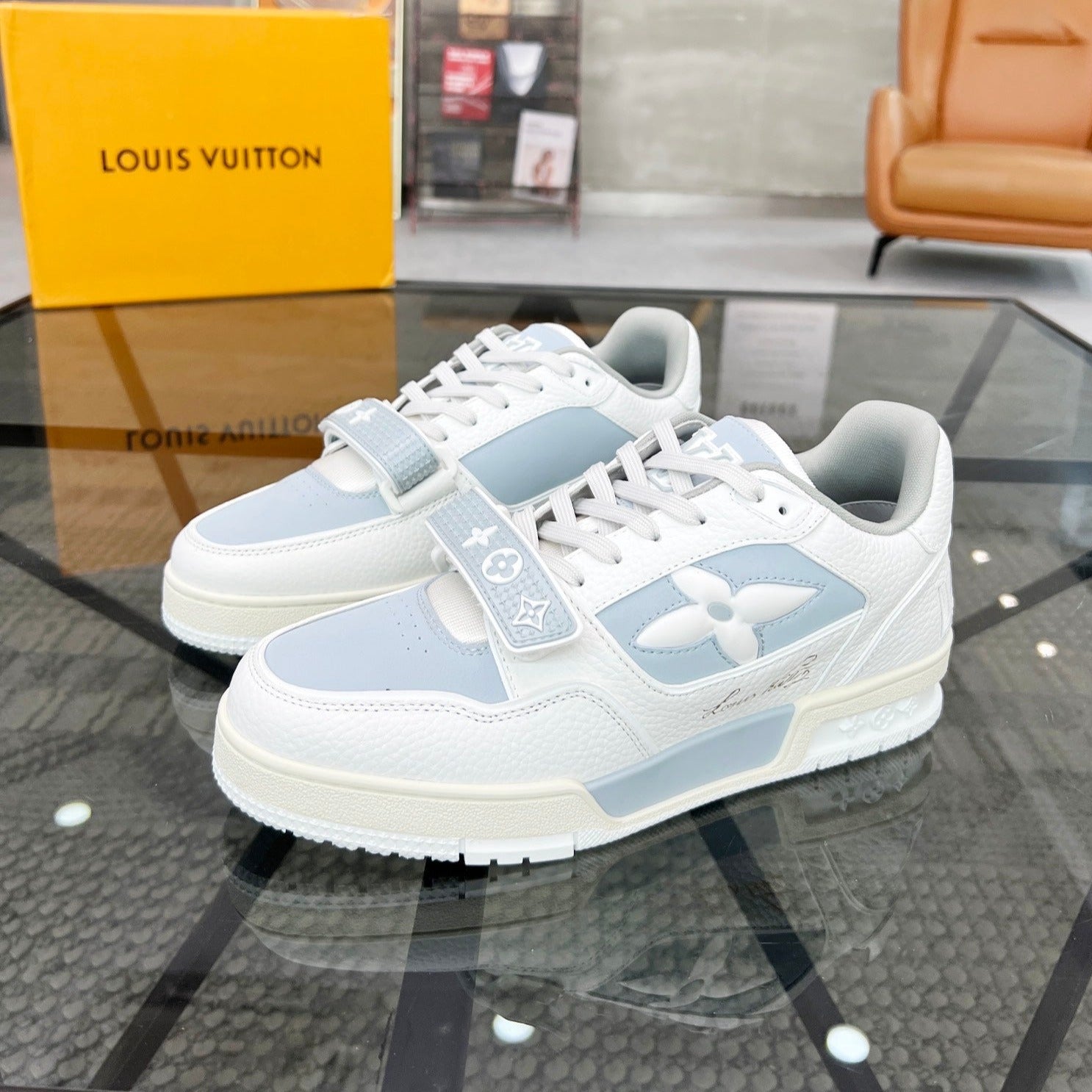 LV TRAINER SNEAKER WHITE CALFSKIN MIX LIGHT BLUE SUEDE