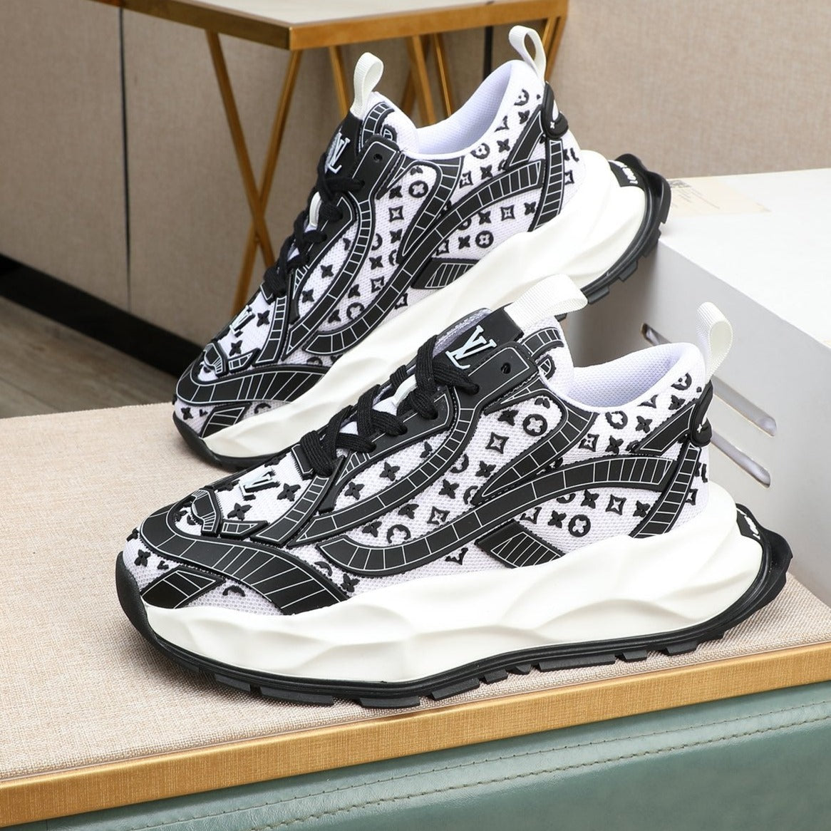 LV TRAINER WHITE MIX BLACK CALFSKIN AND BREATHABLE MESH