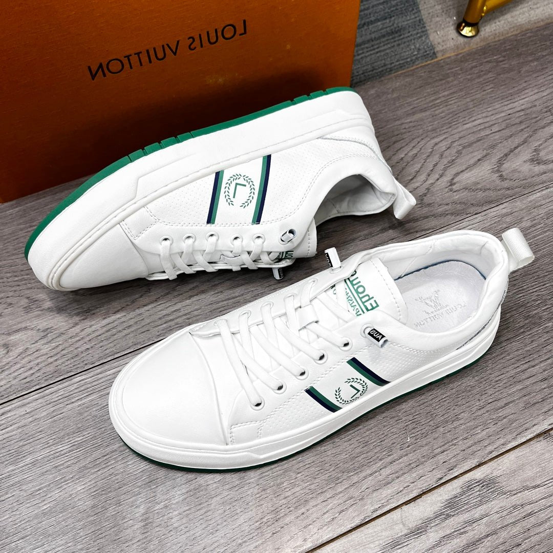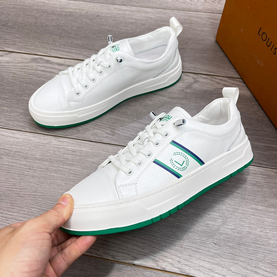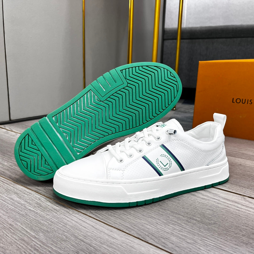 LV TRAINER SNEAKER WHITE MIX GREEN CALFSKIN AND BREATHABLE FABRIC