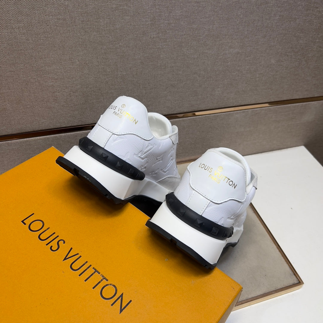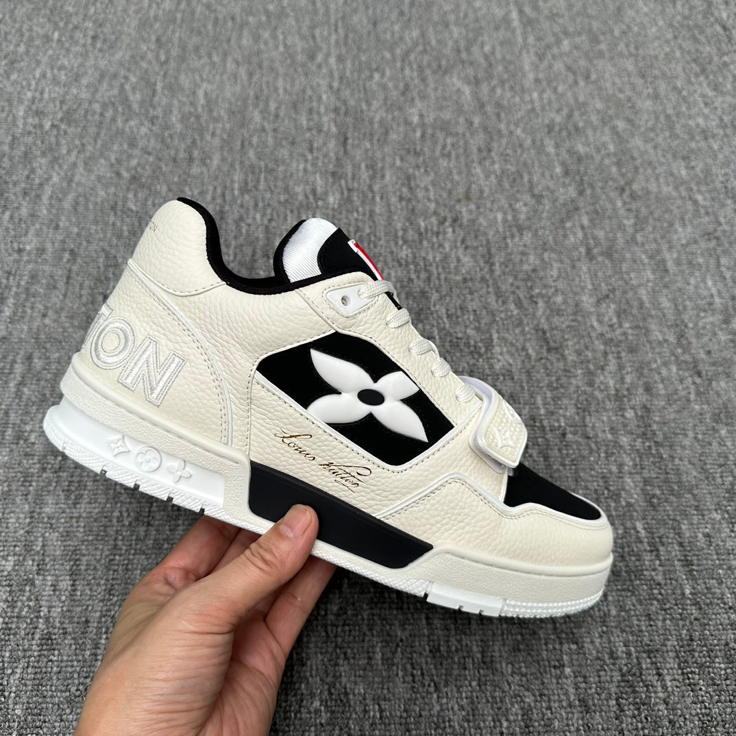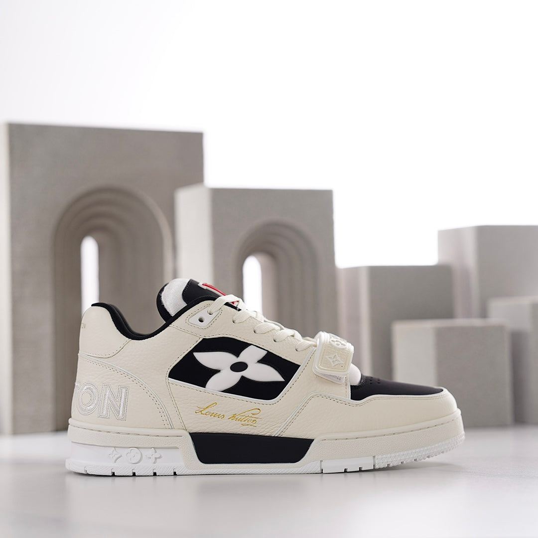 LV TRAINER SNEAKER WHITE CALFSKIN MIX BLACK SUEDE
