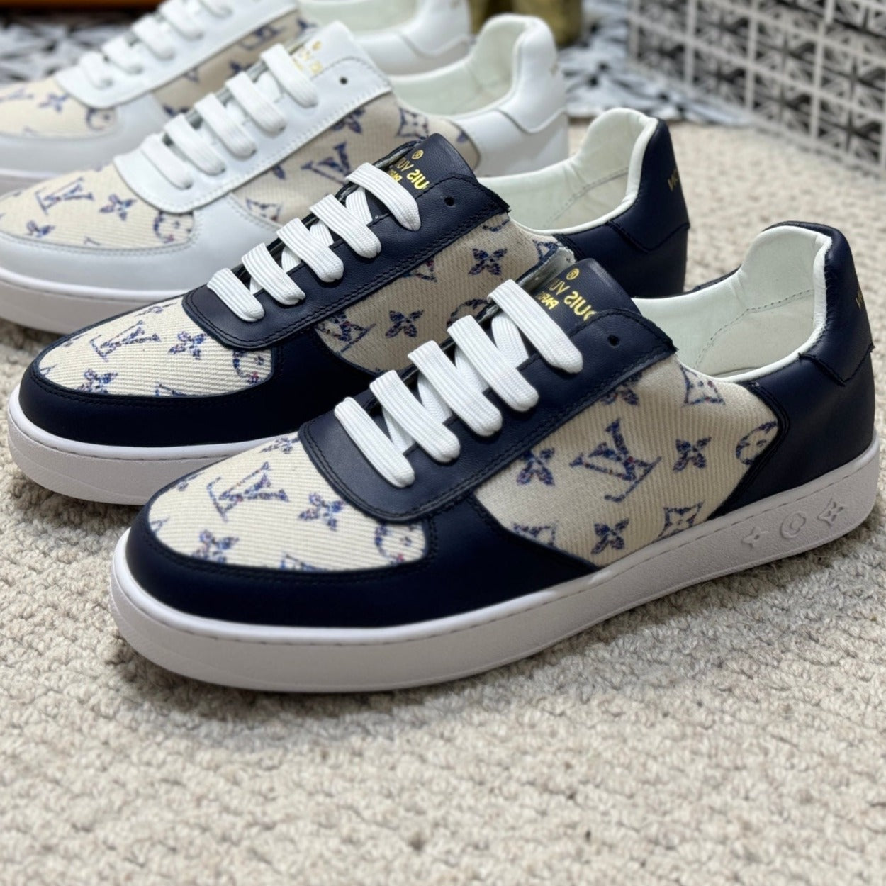 LV TRAINER SNEAKER NAVY BLUE CALFSKIN AND BEIGE MONOGRAM CANVAS