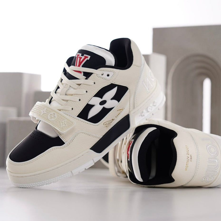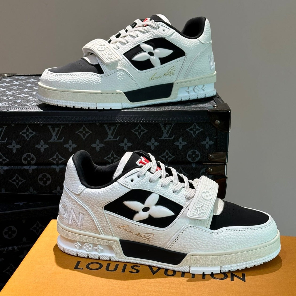 LV TRAINER SNEAKER WHITE AND BLACK CALFSKIN AND BREATHABLE FABRIC