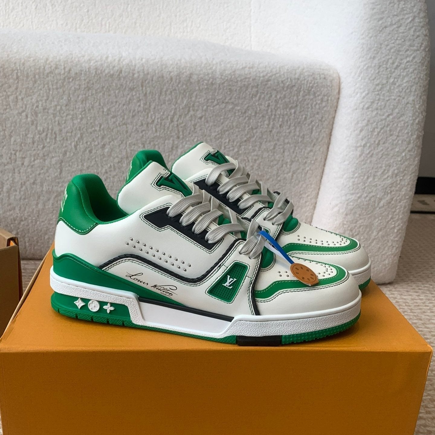 LV TRAINER WHITE AND GREEN CALFSKIN