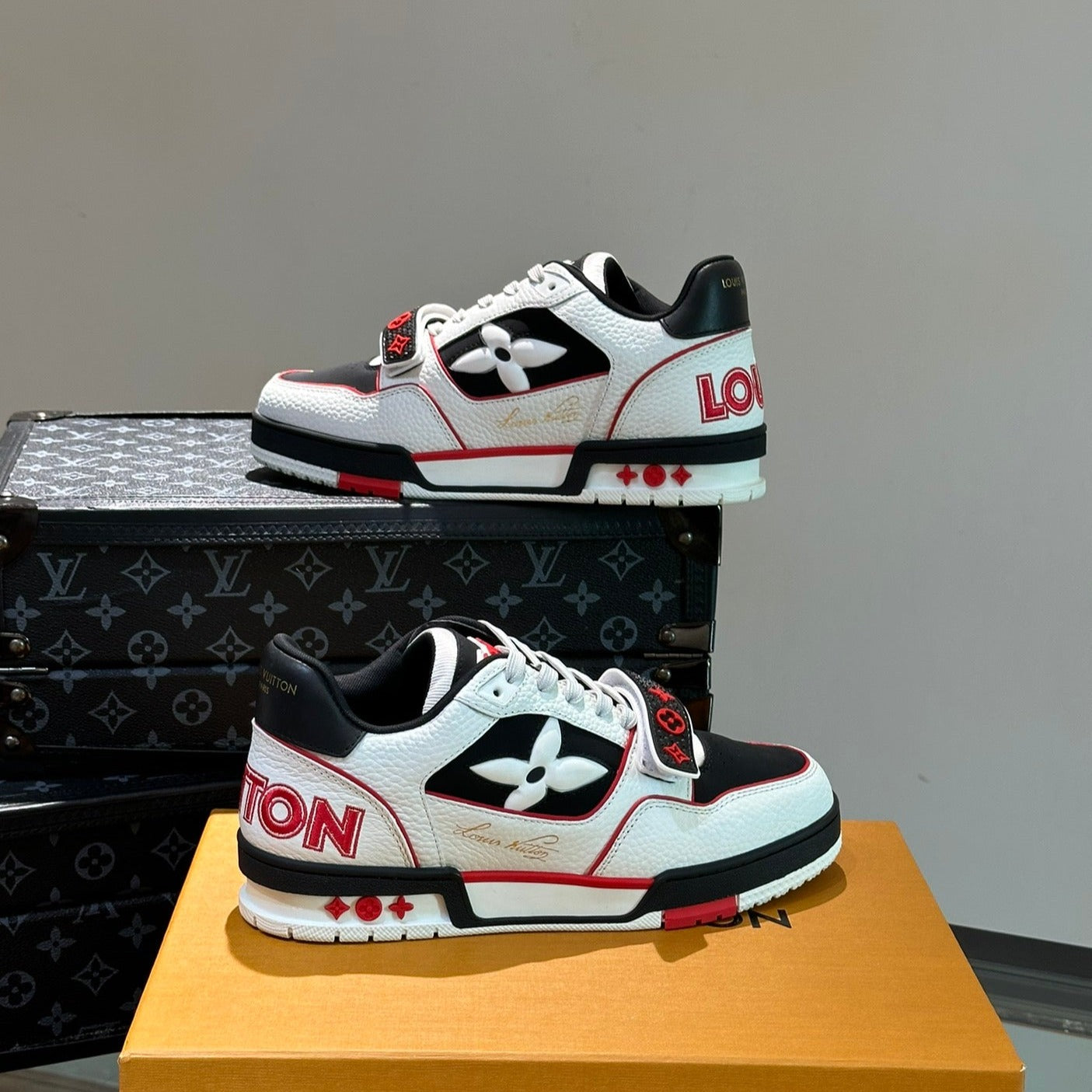 LV Trainer Sneaker White Mix Red Black Cowhide