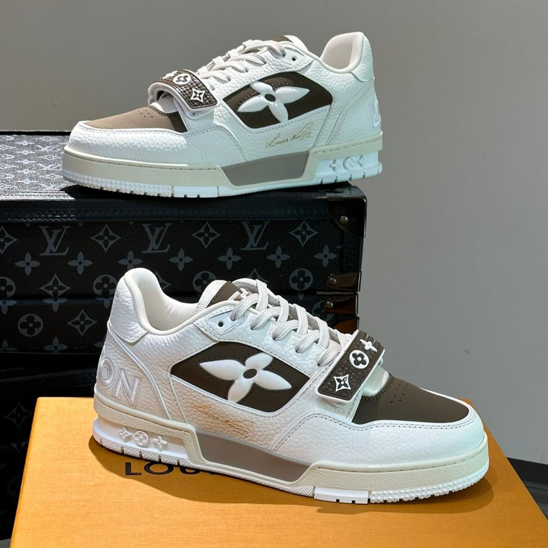 LV TRAINER WHITE AND BROWN CALFSKIN
