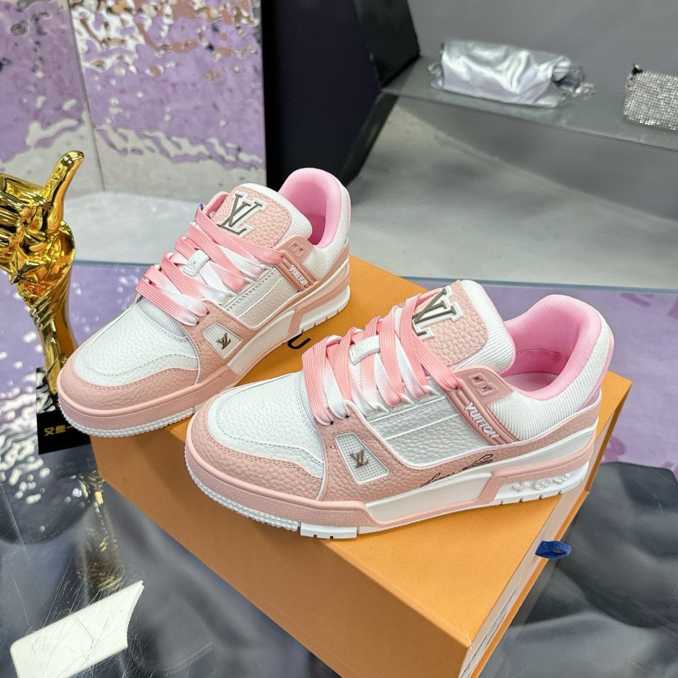 LV TRAINER SNEAKER LIGHT PINK FABRIC AND SUEDE