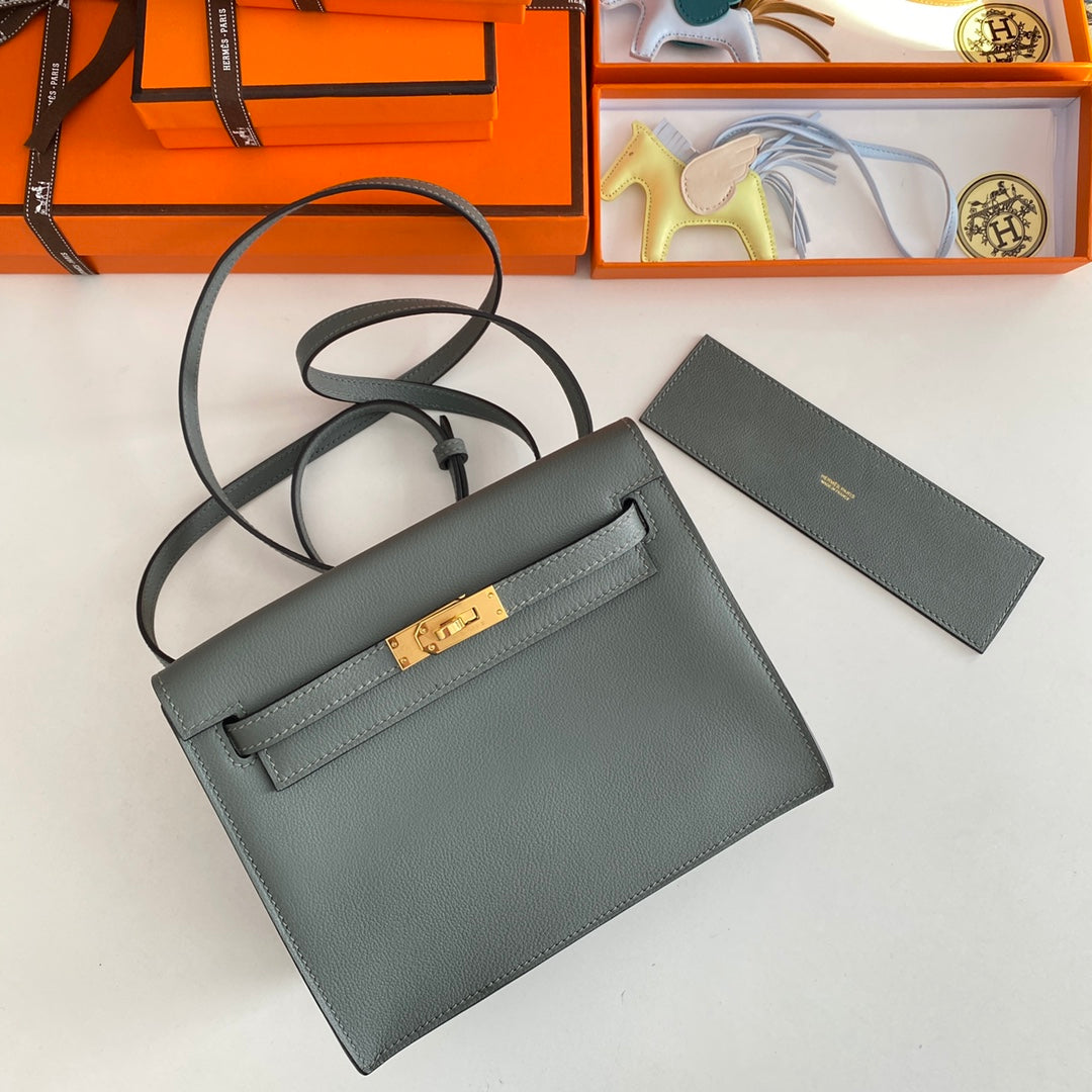 KELLY 23CM JYPSIERE GREY LEATHER CROSSBODY BAG GHW