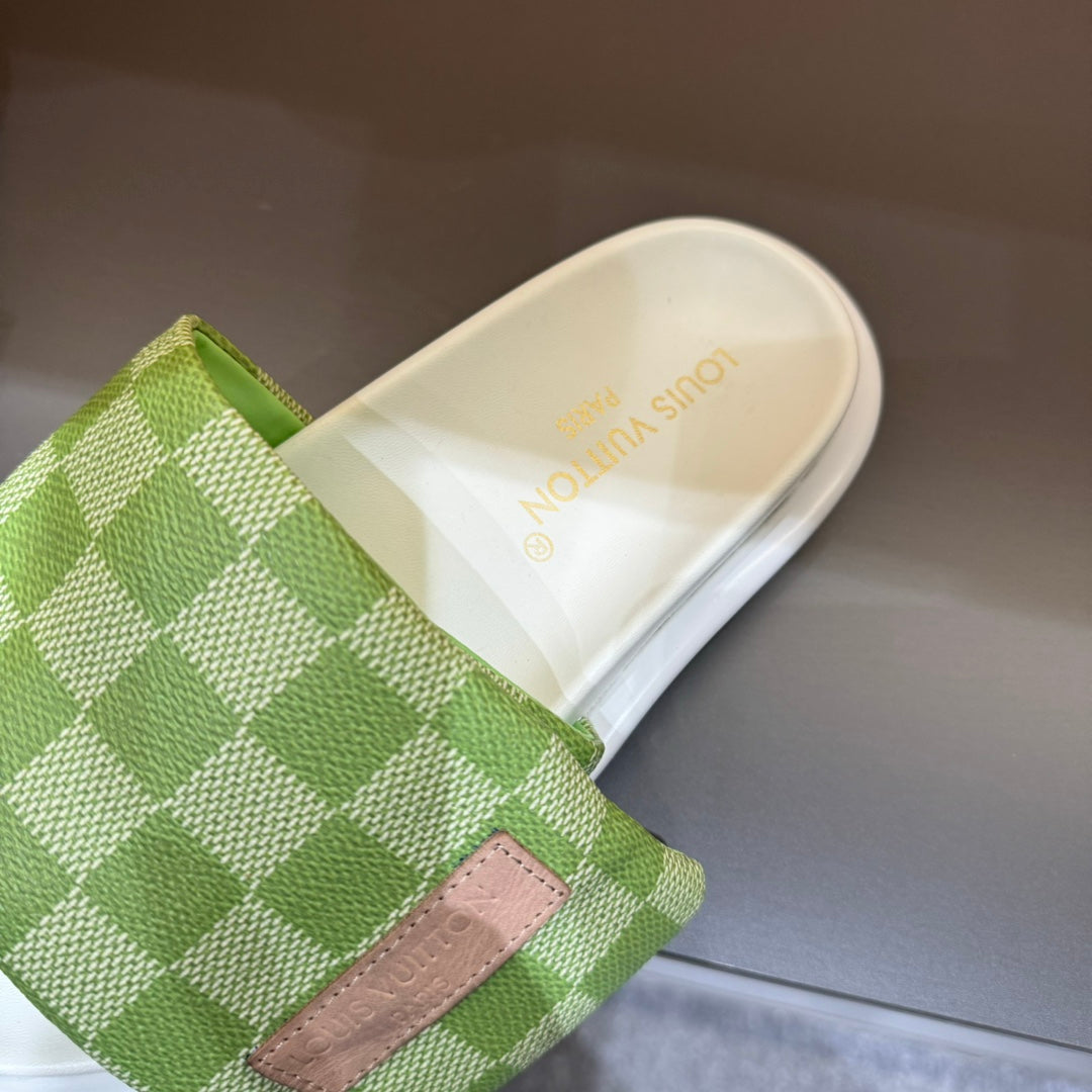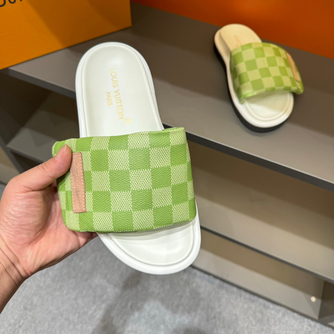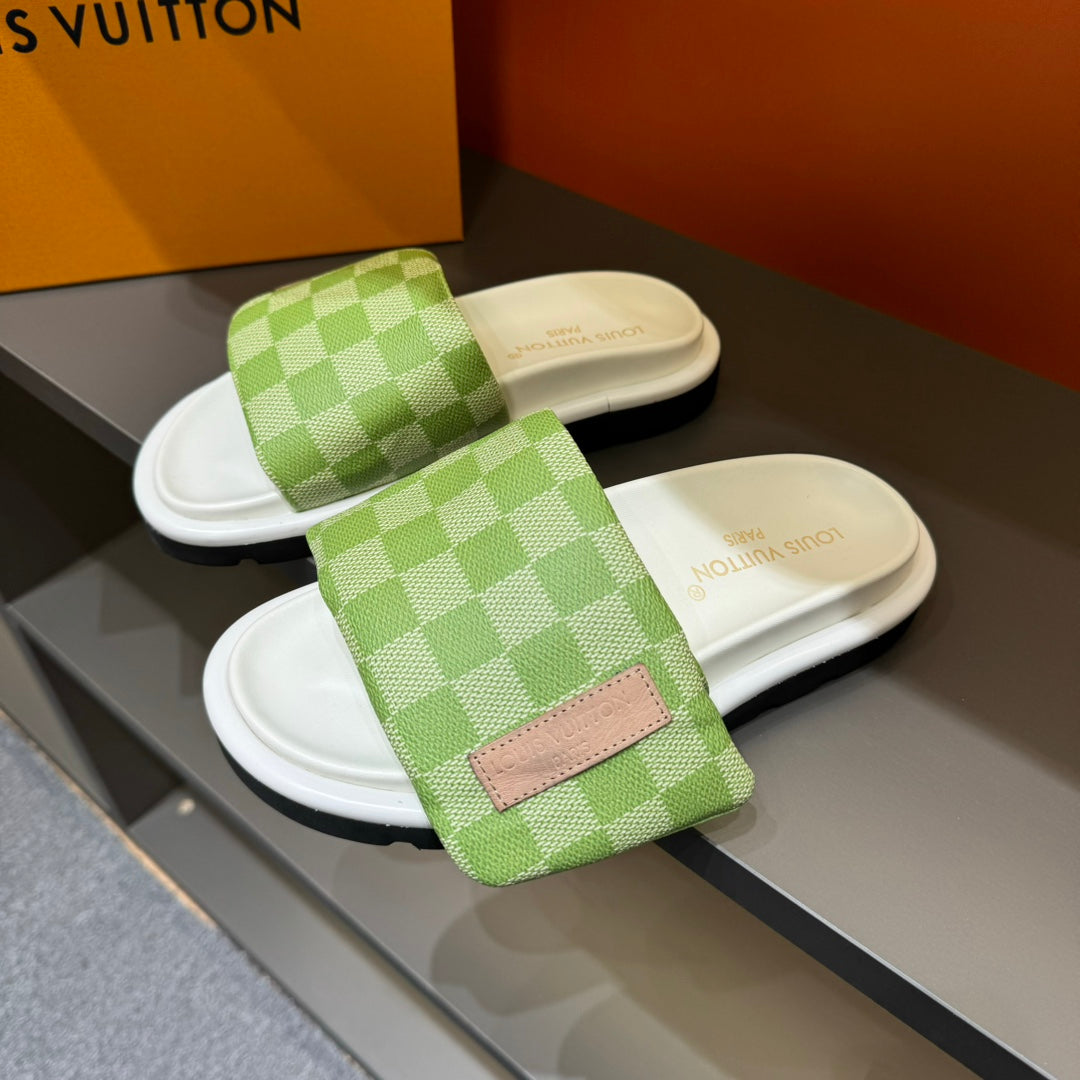 LV VELCRO SLIPPERS PEAR GREEN DAMIER MONOGRAM CALFSKIN