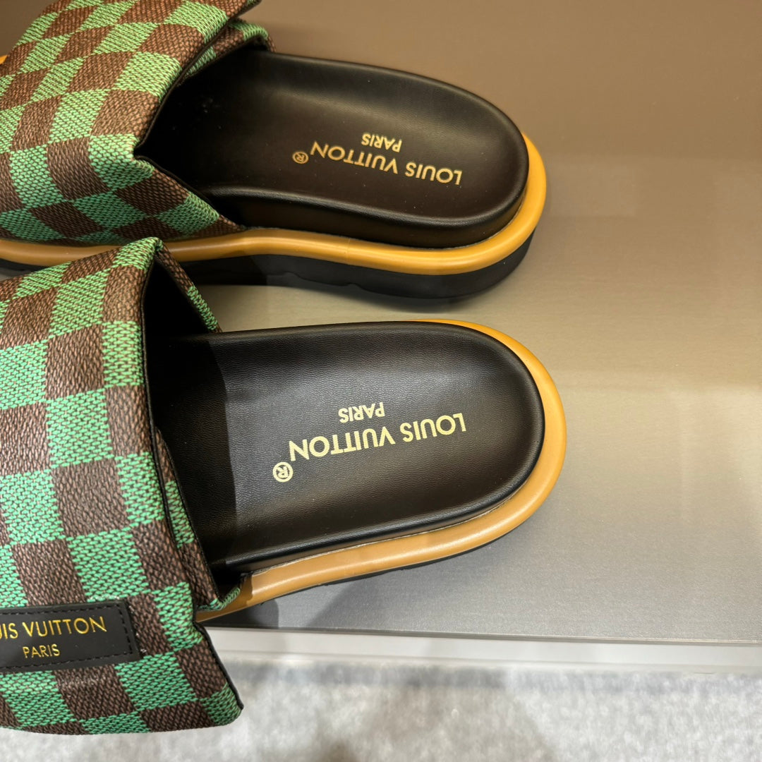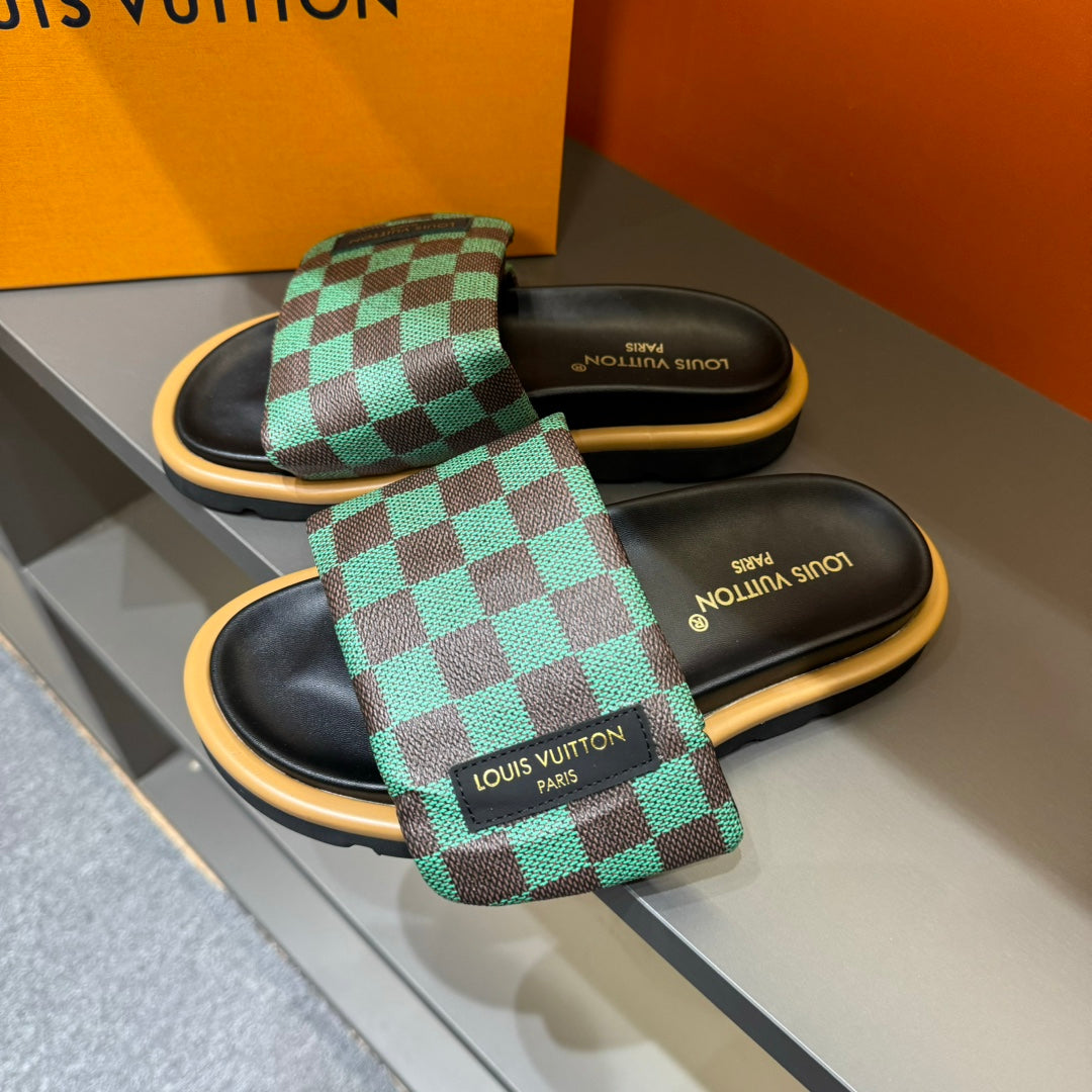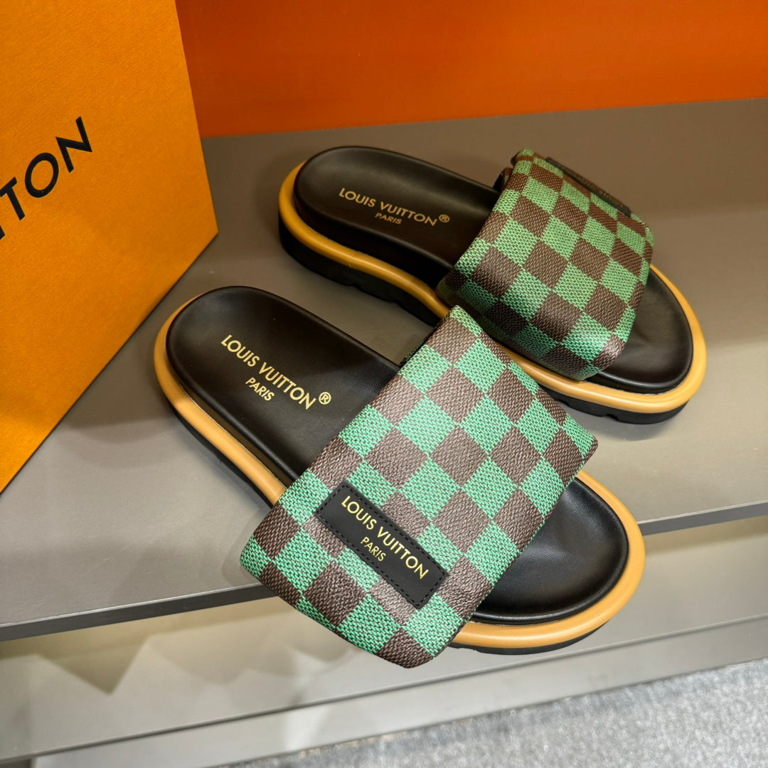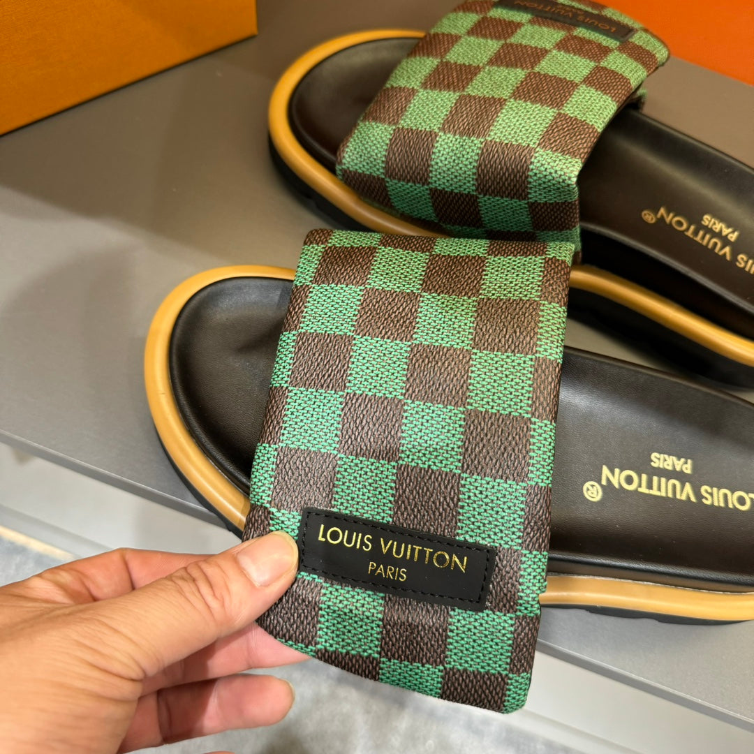 LV VELCRO SLIPPERS PEAR GREEN DAMIER MONOGRAM CALFSKIN