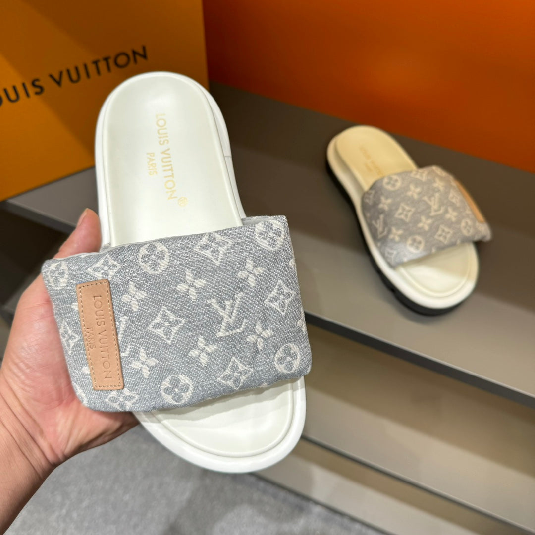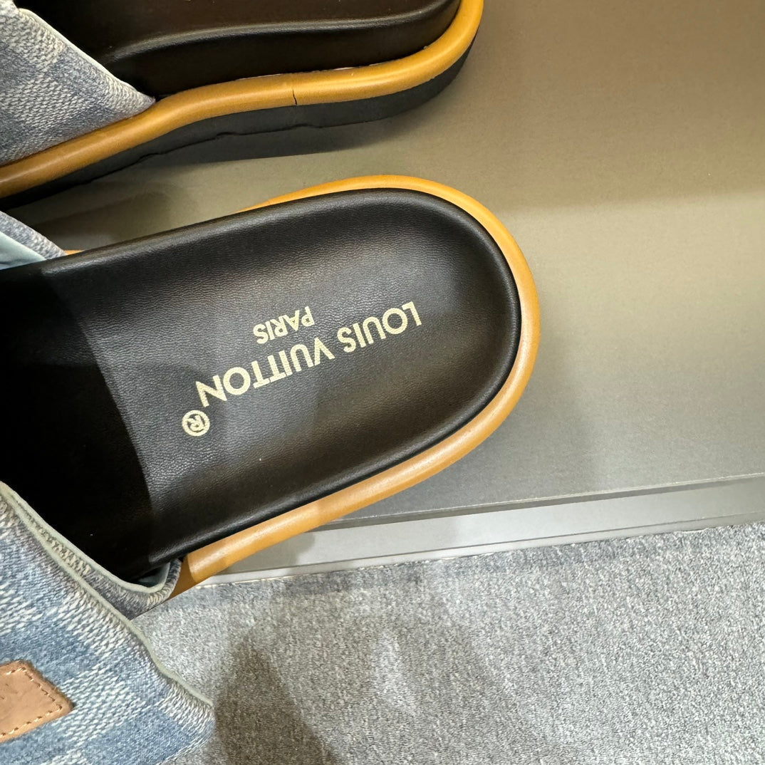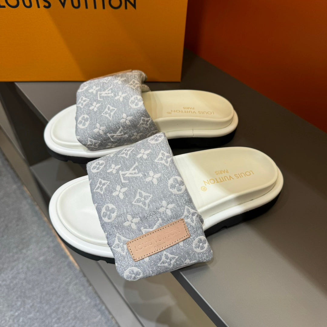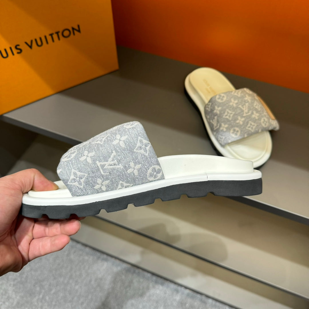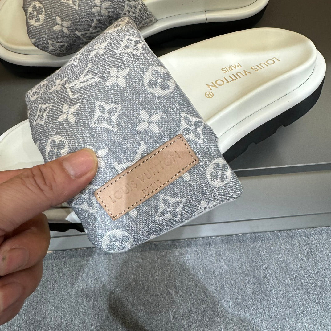 LV VELCRO SLIPPERS IN LIGHT BLUE MONOGRAM DENIM
