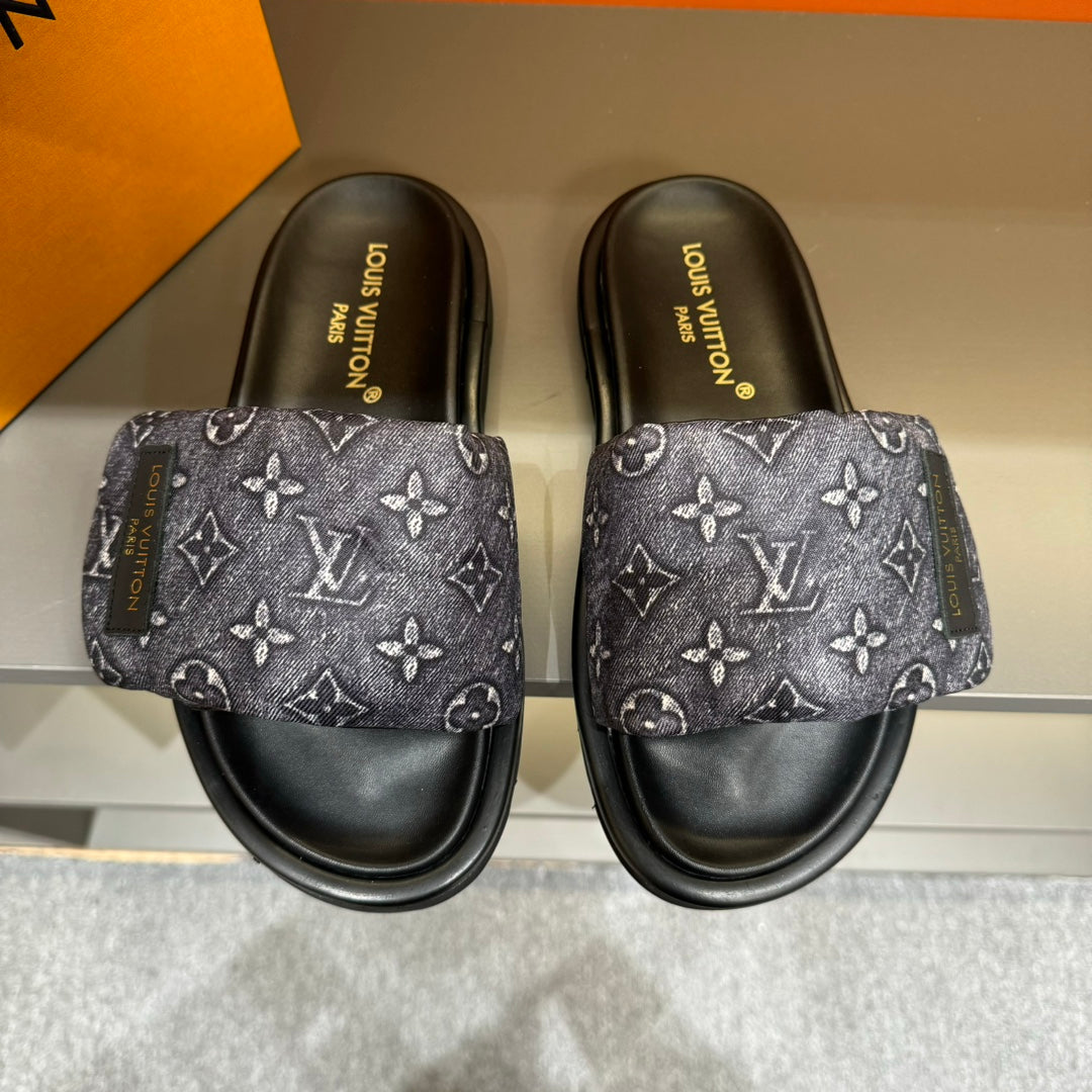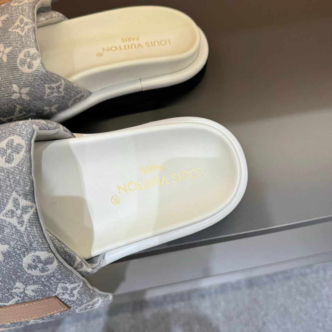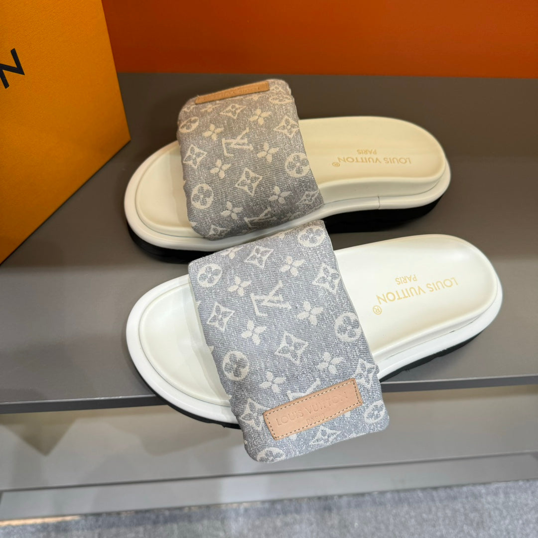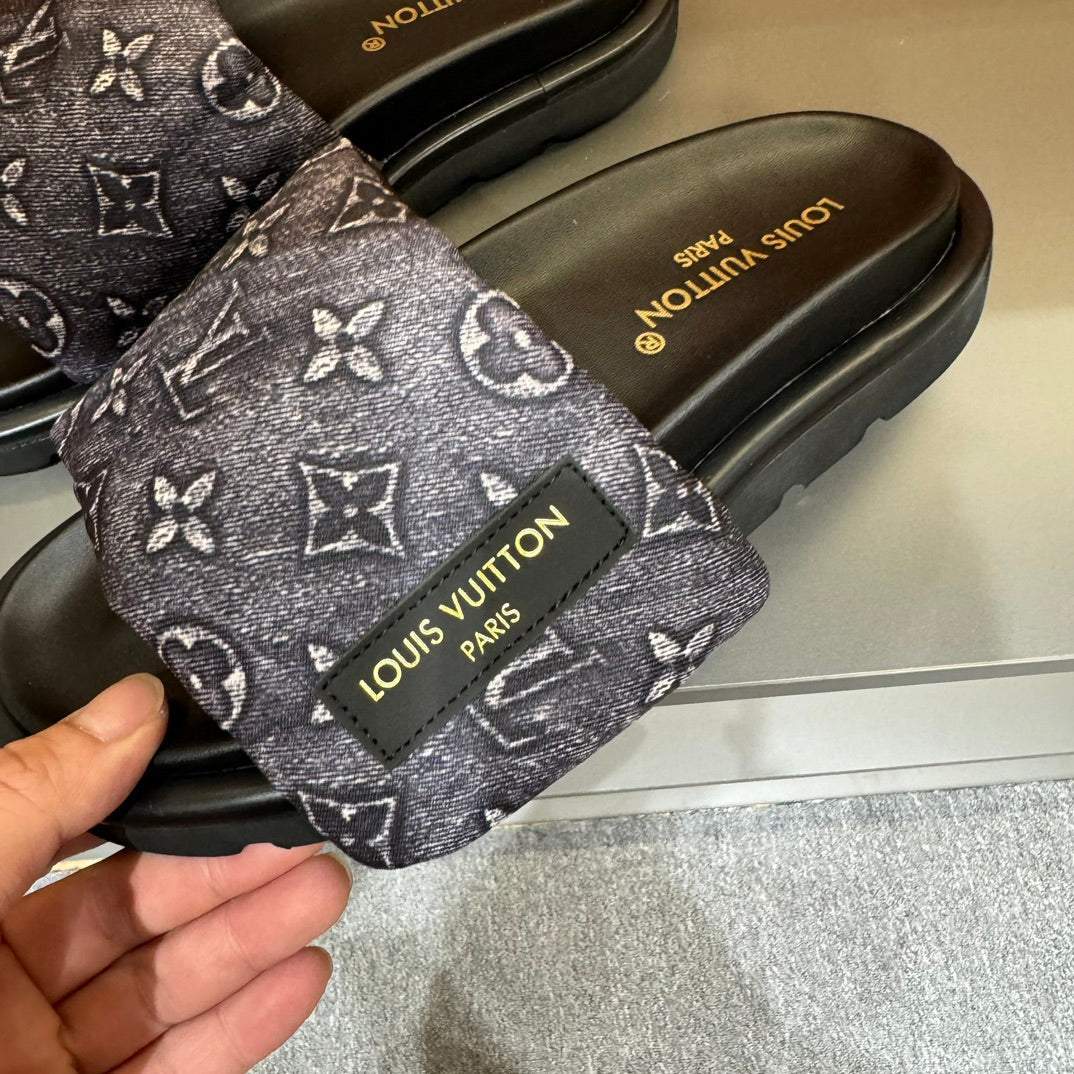 LV VELCRO SLIPPERS IN LIGHT BLUE MONOGRAM DENIM