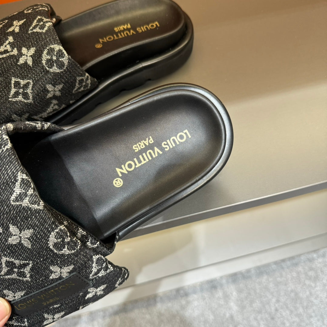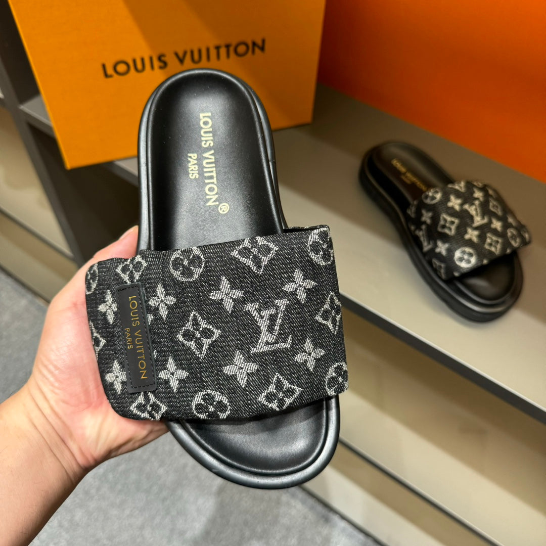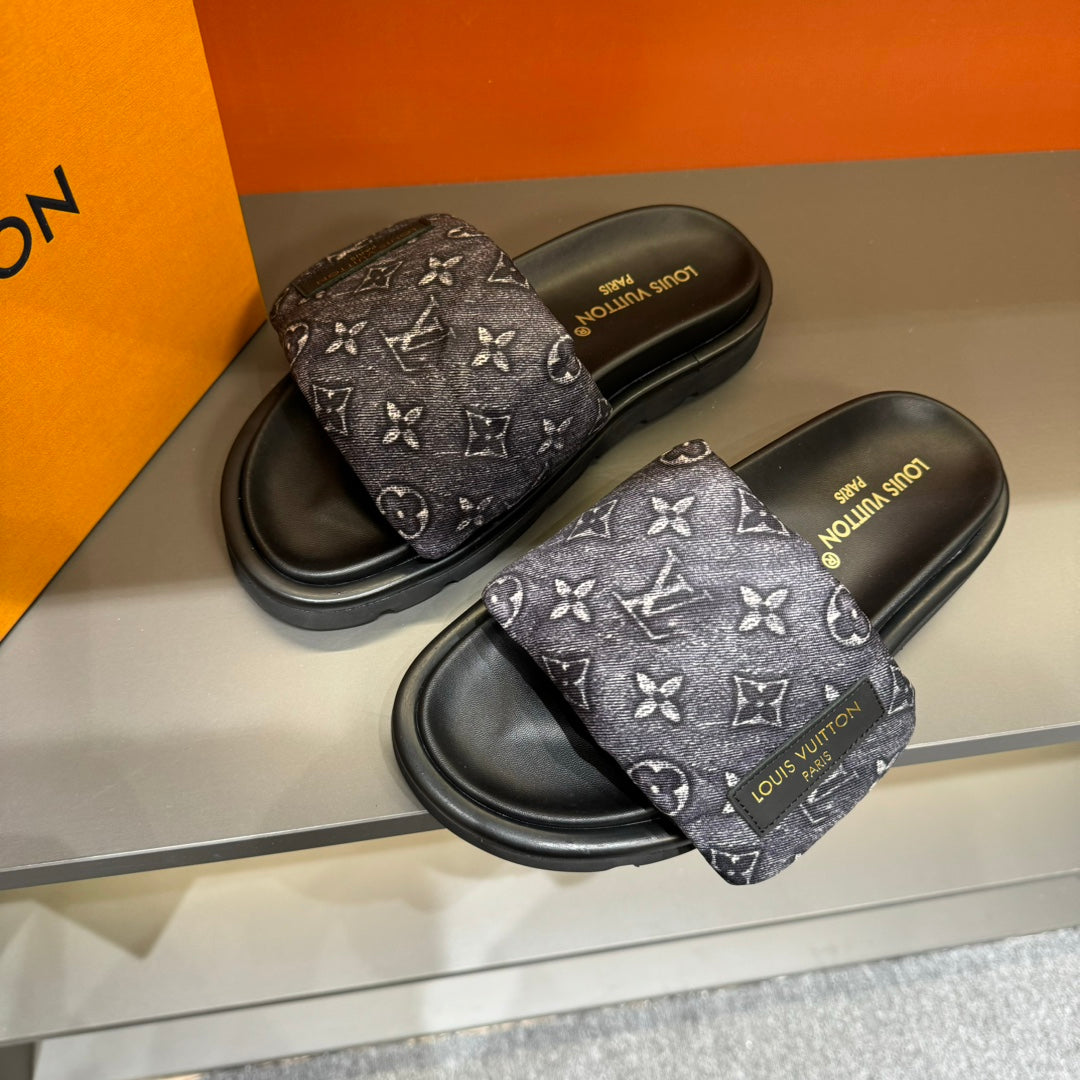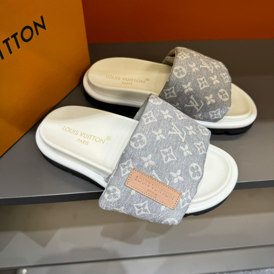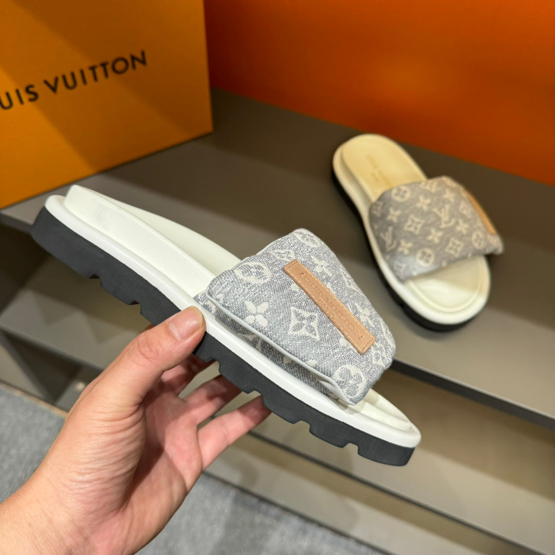 LV VELCRO SLIPPERS IN LIGHT BLUE MONOGRAM DENIM