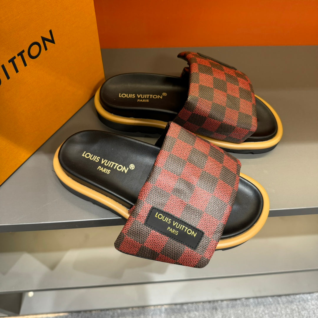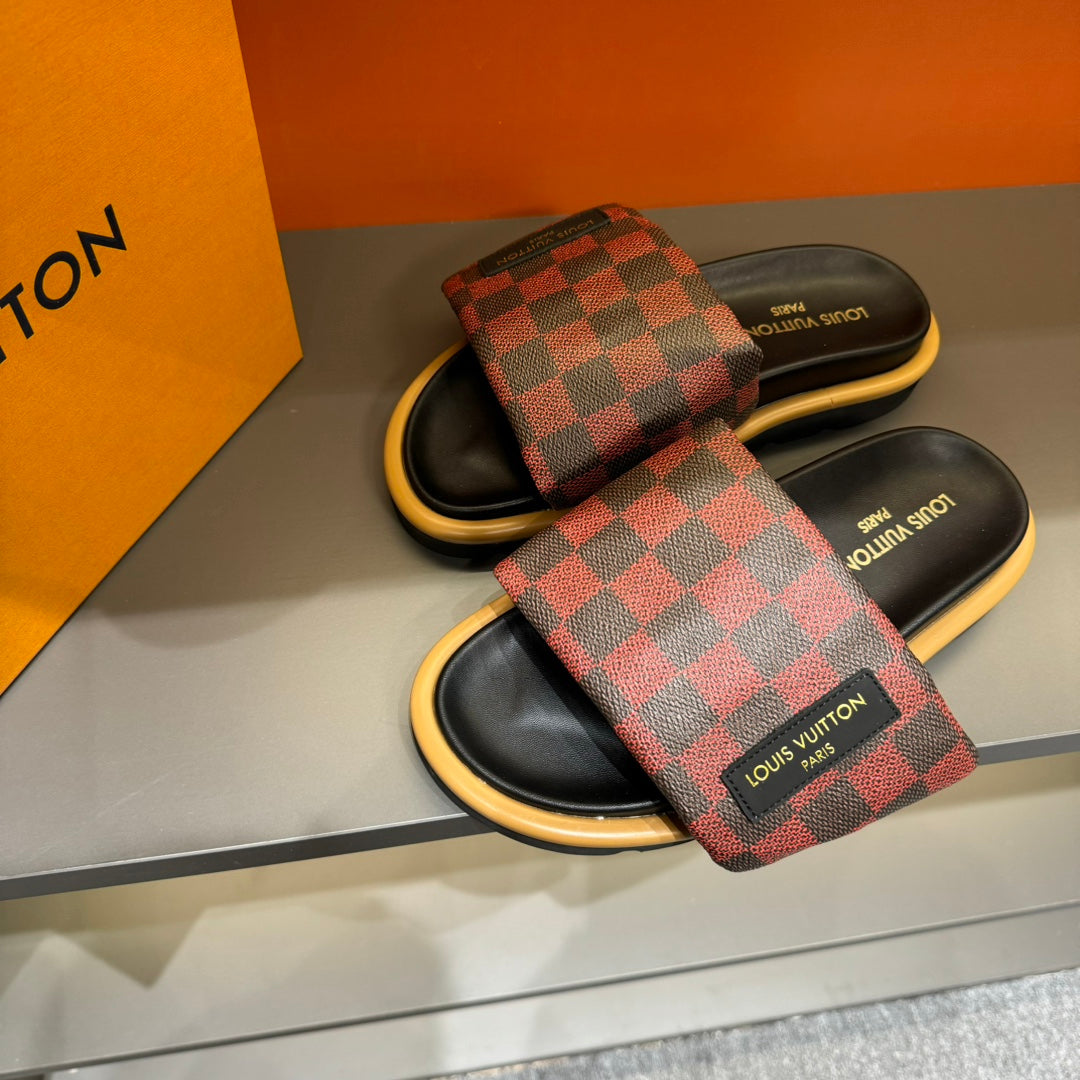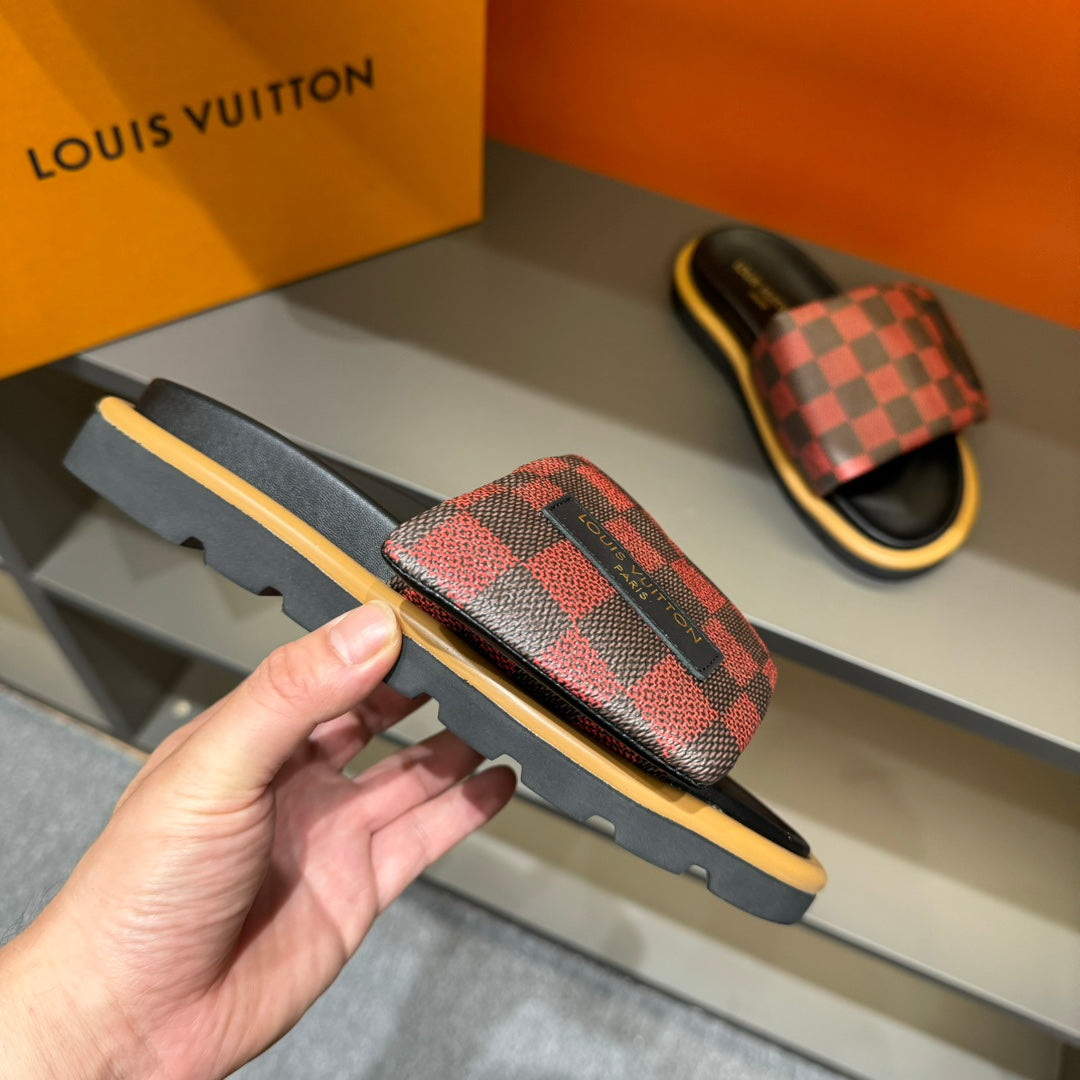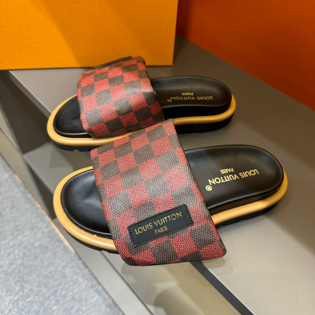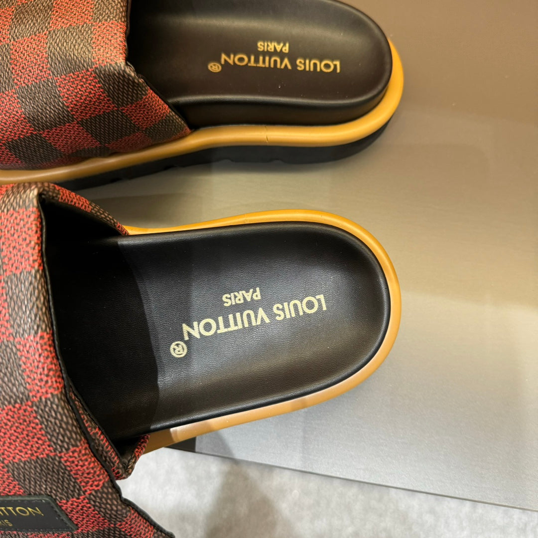LV VELCRO SLIPPERS RED MIX BLACK DAMIER MONOGRAM CALFSKIN