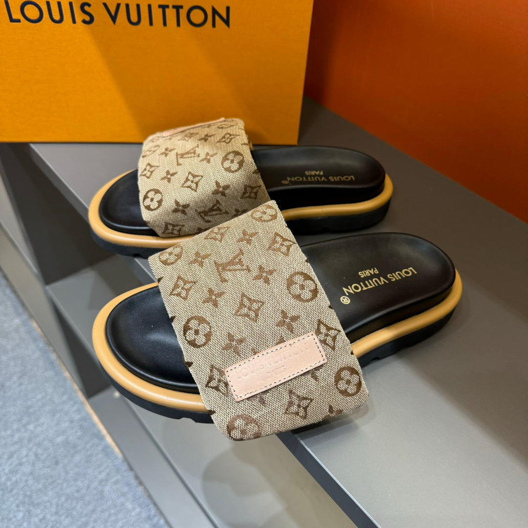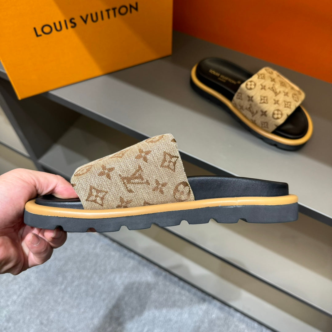 LV VELCRO SLIPPERS DESERT SAND DAMIER MONOGRAM CALFSKIN