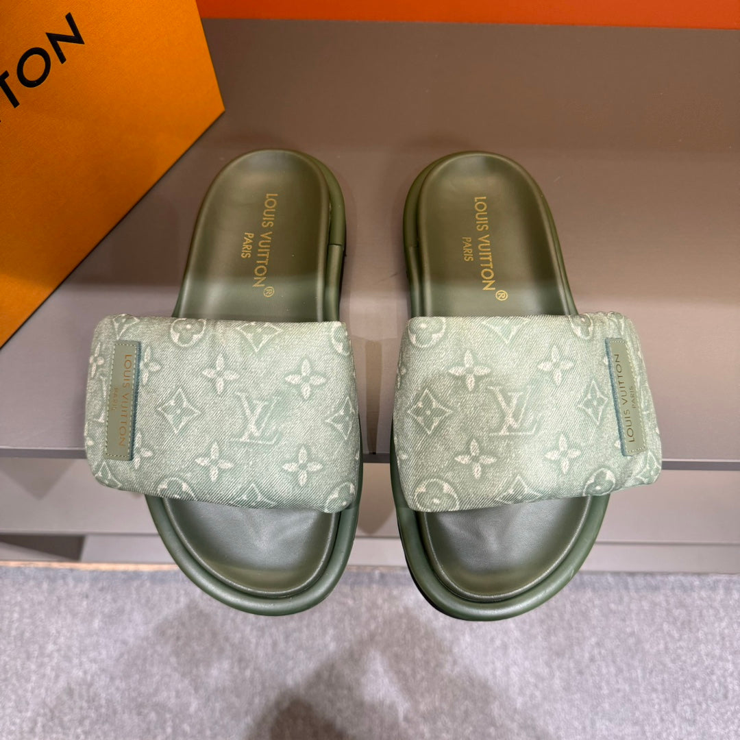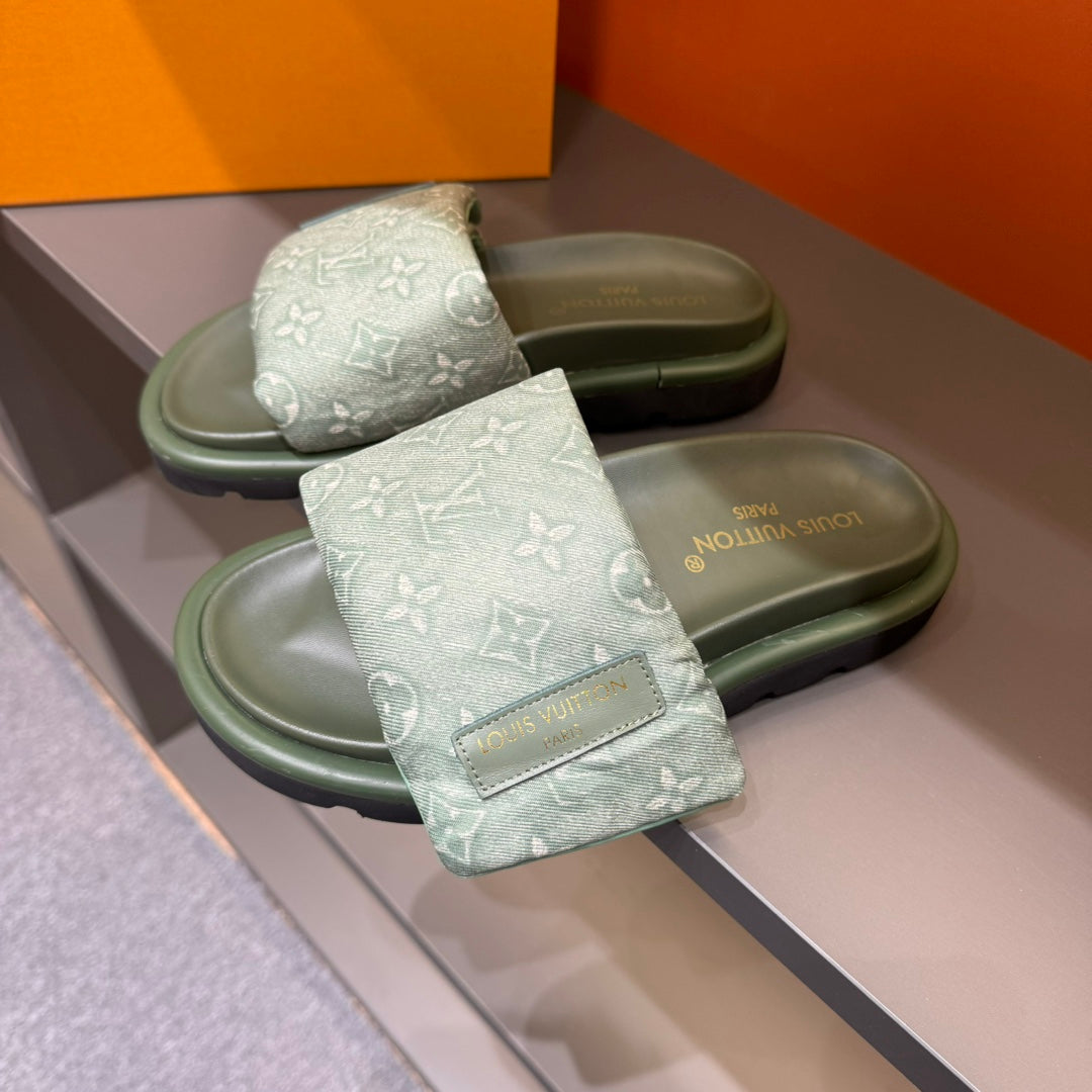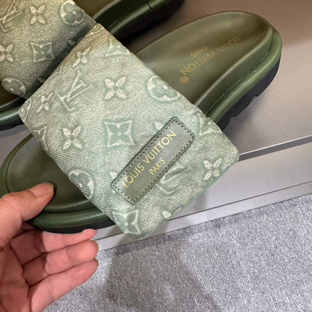 LV VELCRO SLIPPERS IN OLIVE GREEN MONOGRAM JACQUARD
