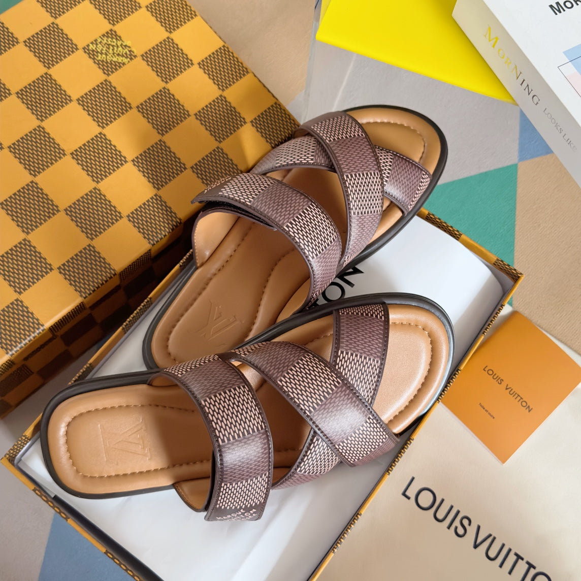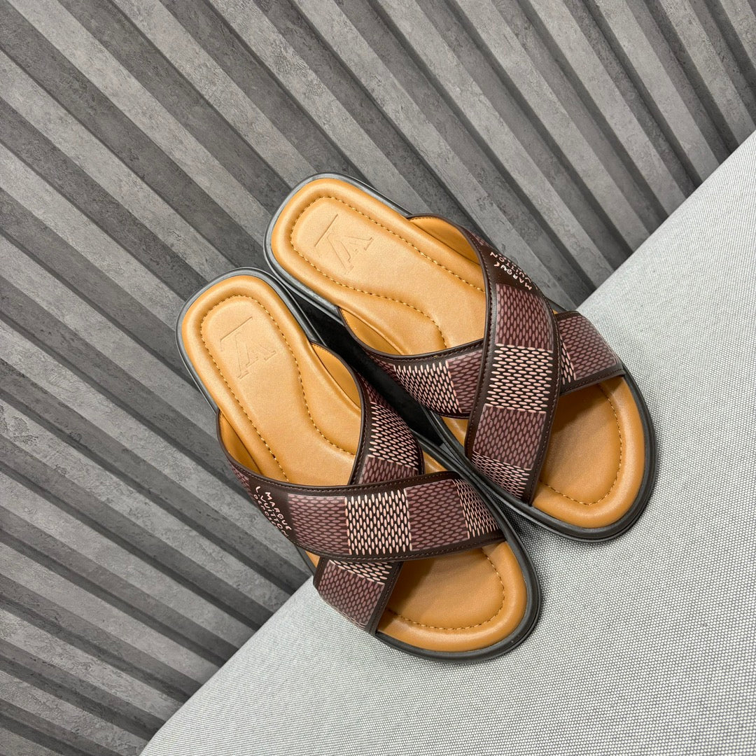 LV VENICE MULE SLIPPERS CARAMEL BROWN DAMIER