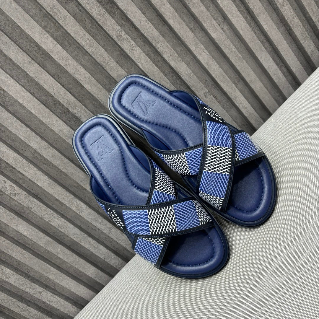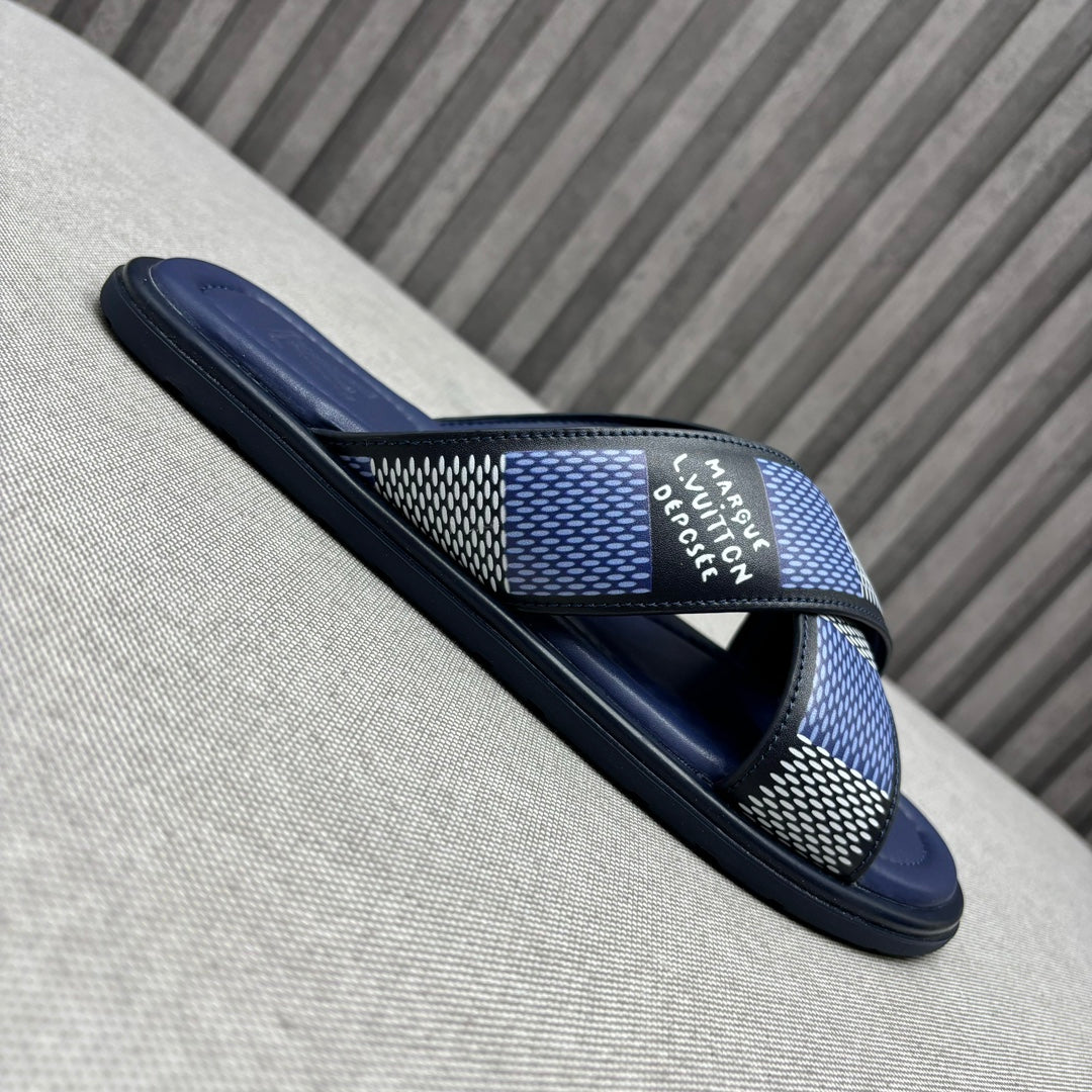 LV VENICE MULE SLIPPERS NAVY BLUE DAMIER