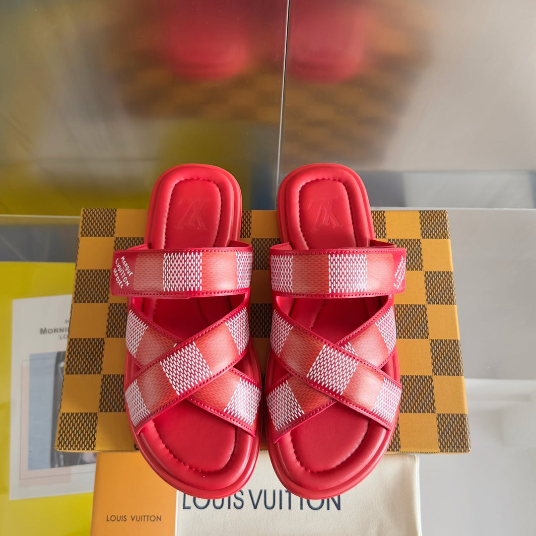 LV VENICE MULE SLIPPERS CHERRY RED DAMIER