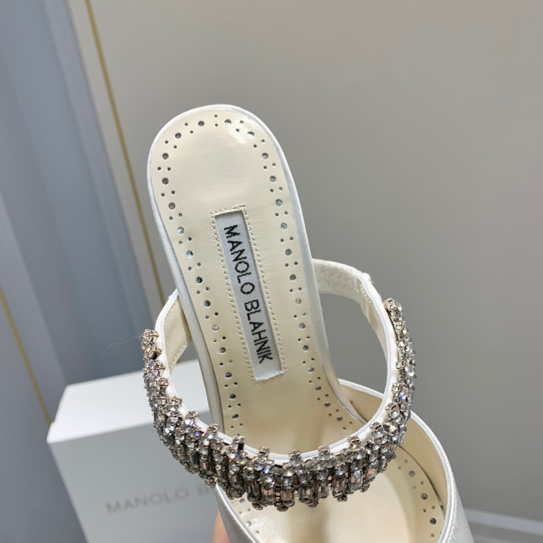 Manolo Mules Crystal White Silk Satin 219381