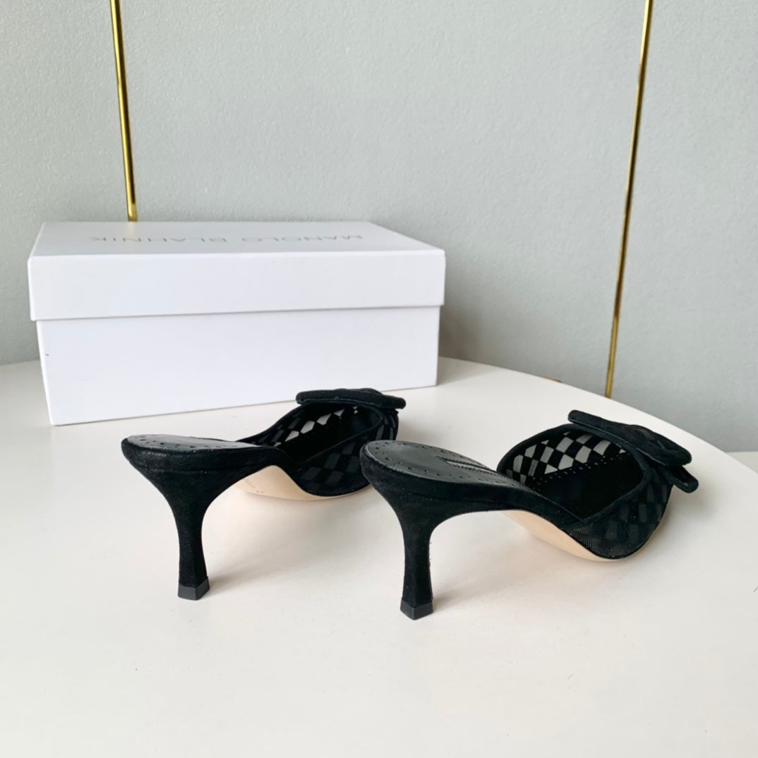 Manolo Slingback 7cm Black Suede Leather Bottom 451205