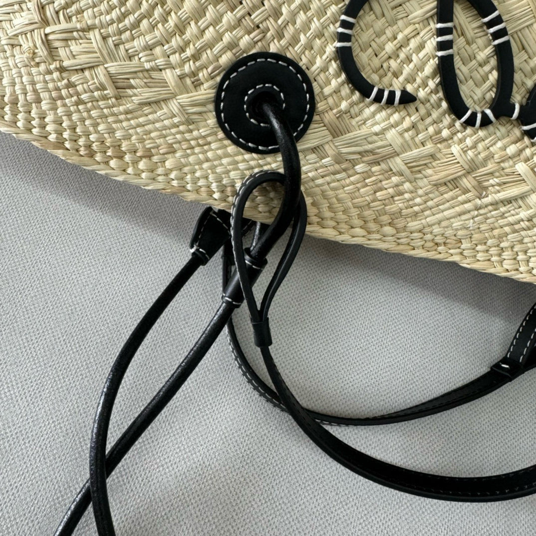Loew Anagram Basket 46cm Beige Raffia Black Calfskin