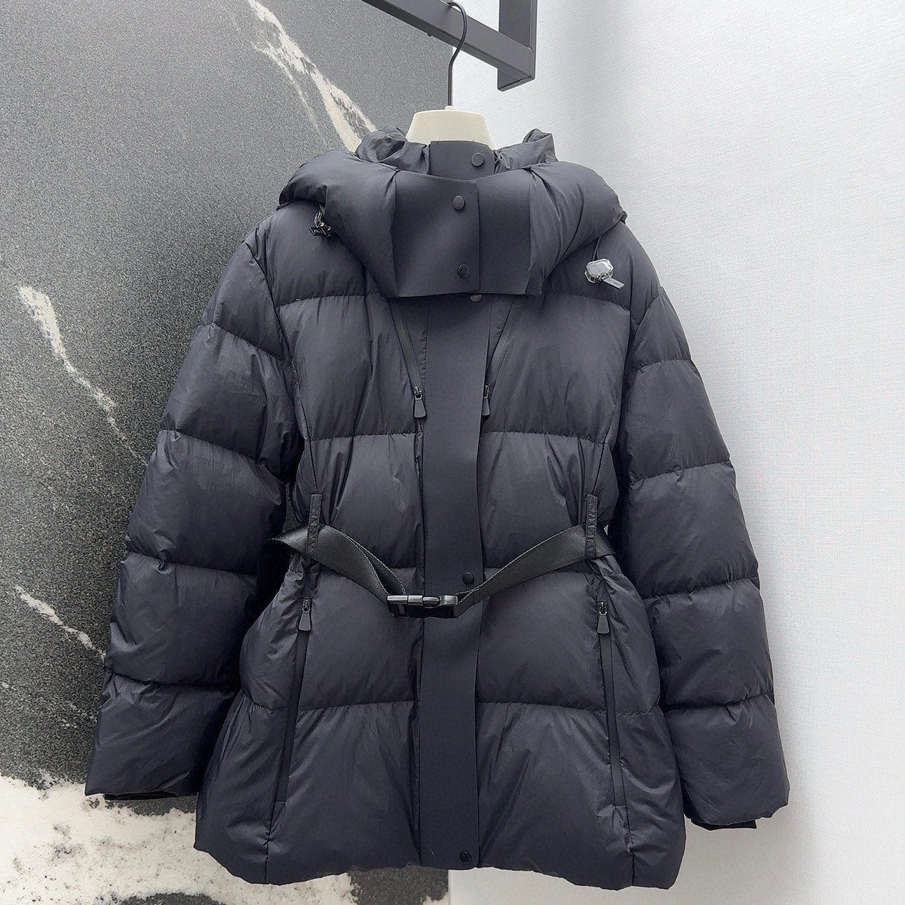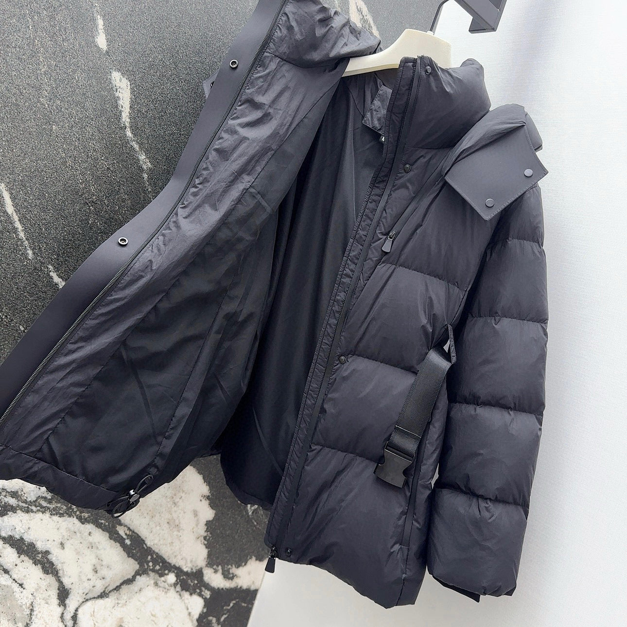 Burberry 25 Stand Collar Hooded Down Jacket Black Polyester