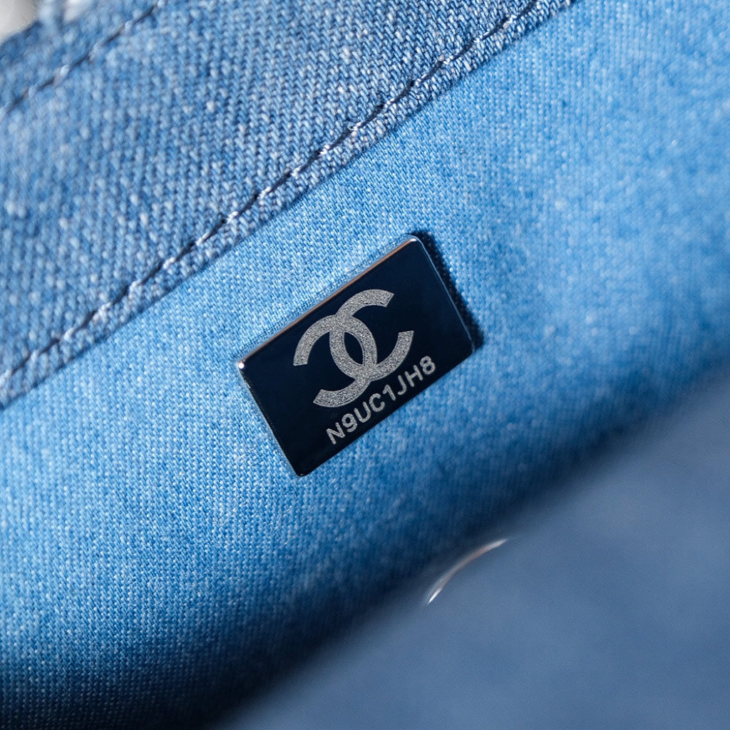24S Flap Bag 20cm Blue Quilted Denim