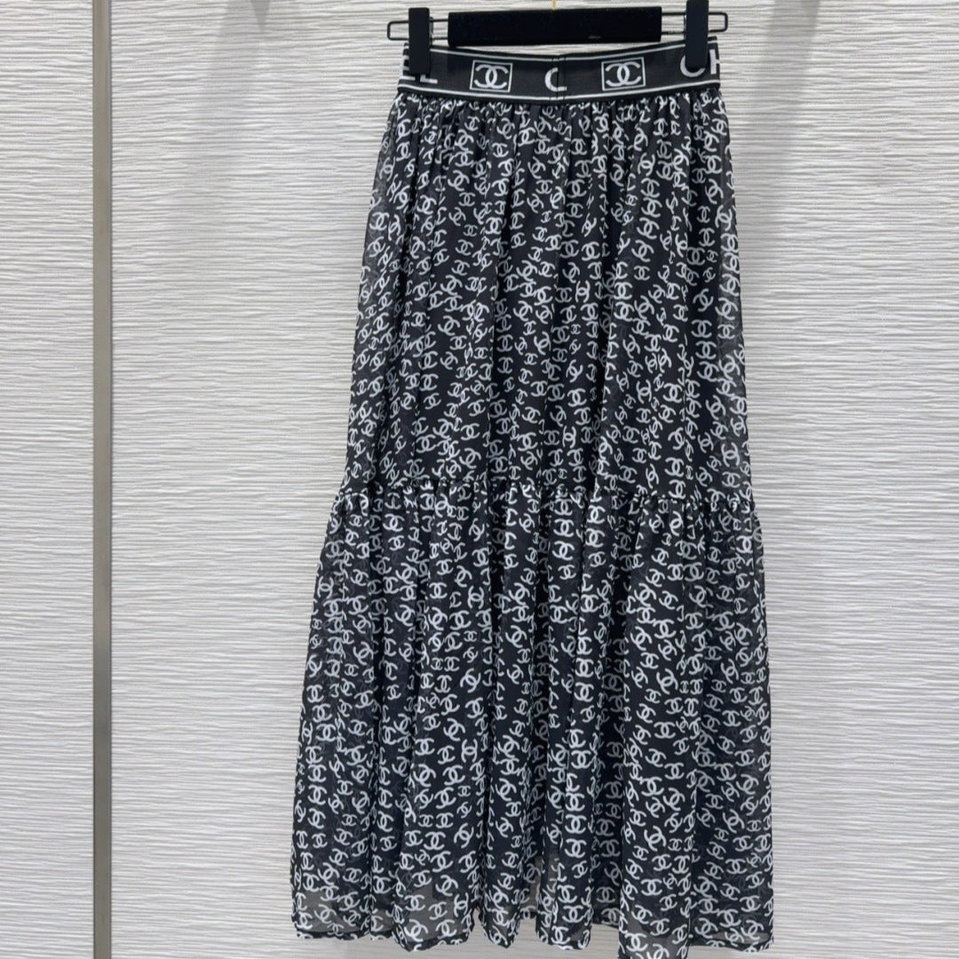 CC 2025 Double C Printed Skirt Black White Polyester Fiber
