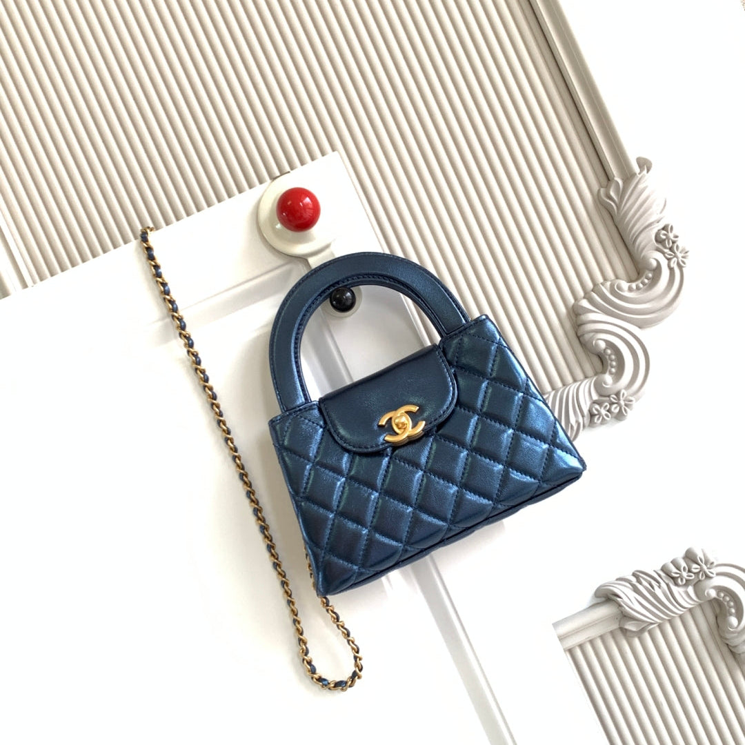 cc 24a nano 19cm kelly shopper bag navy blue lambskin