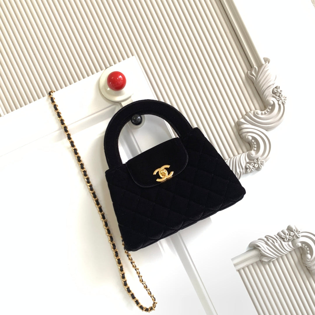 cc 24a nano 19cm kelly shopper bag black white tweed