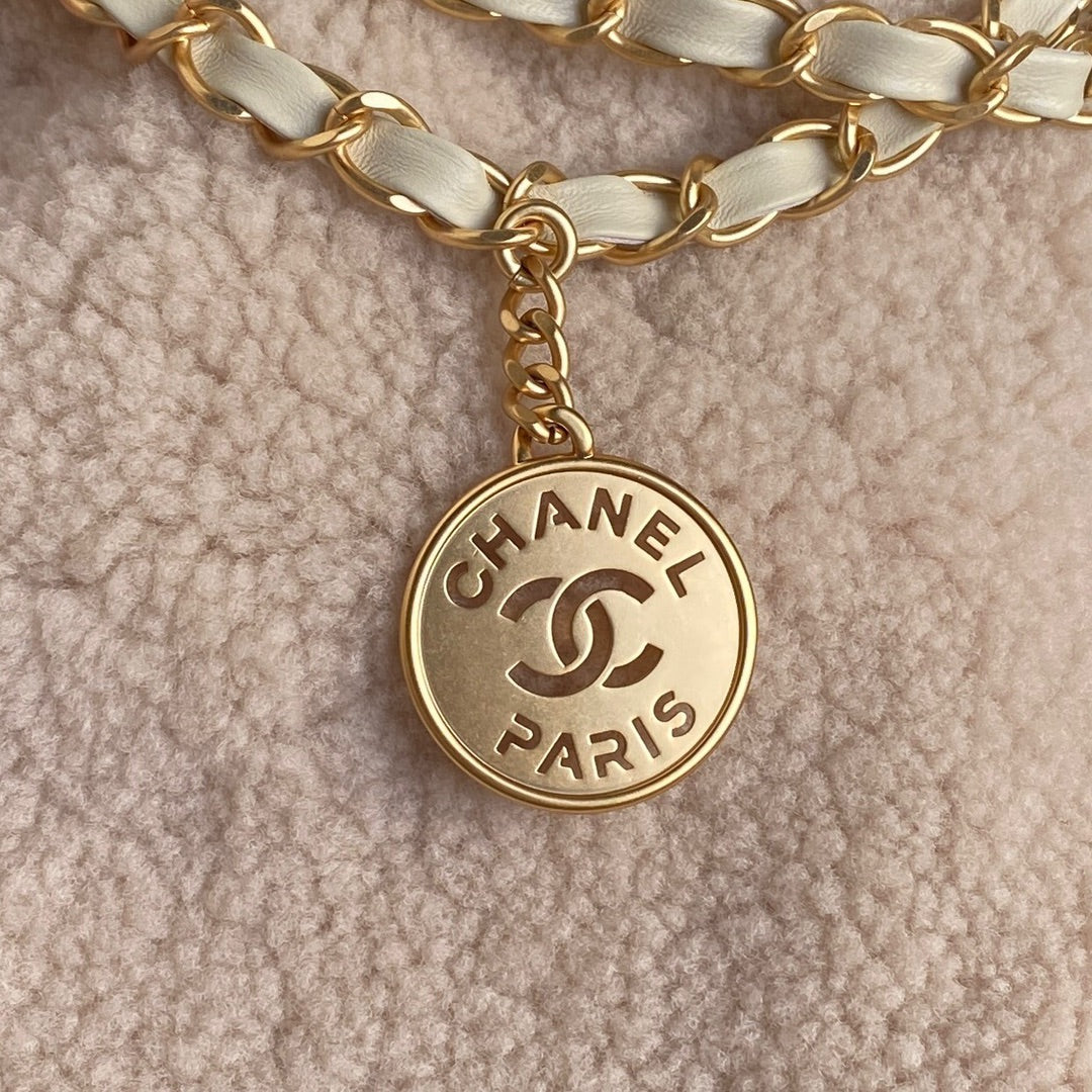 CC 24K Coco Hanle Nano 18cm Beige Grained Calfskin Gold Hardware