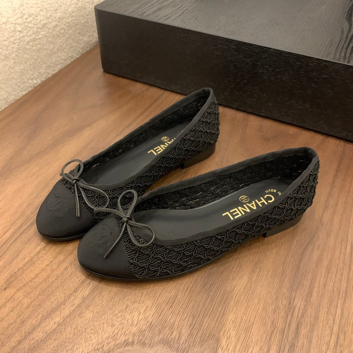 CC 25 Ballet Flat Large Logo Black Quilted Calfskin