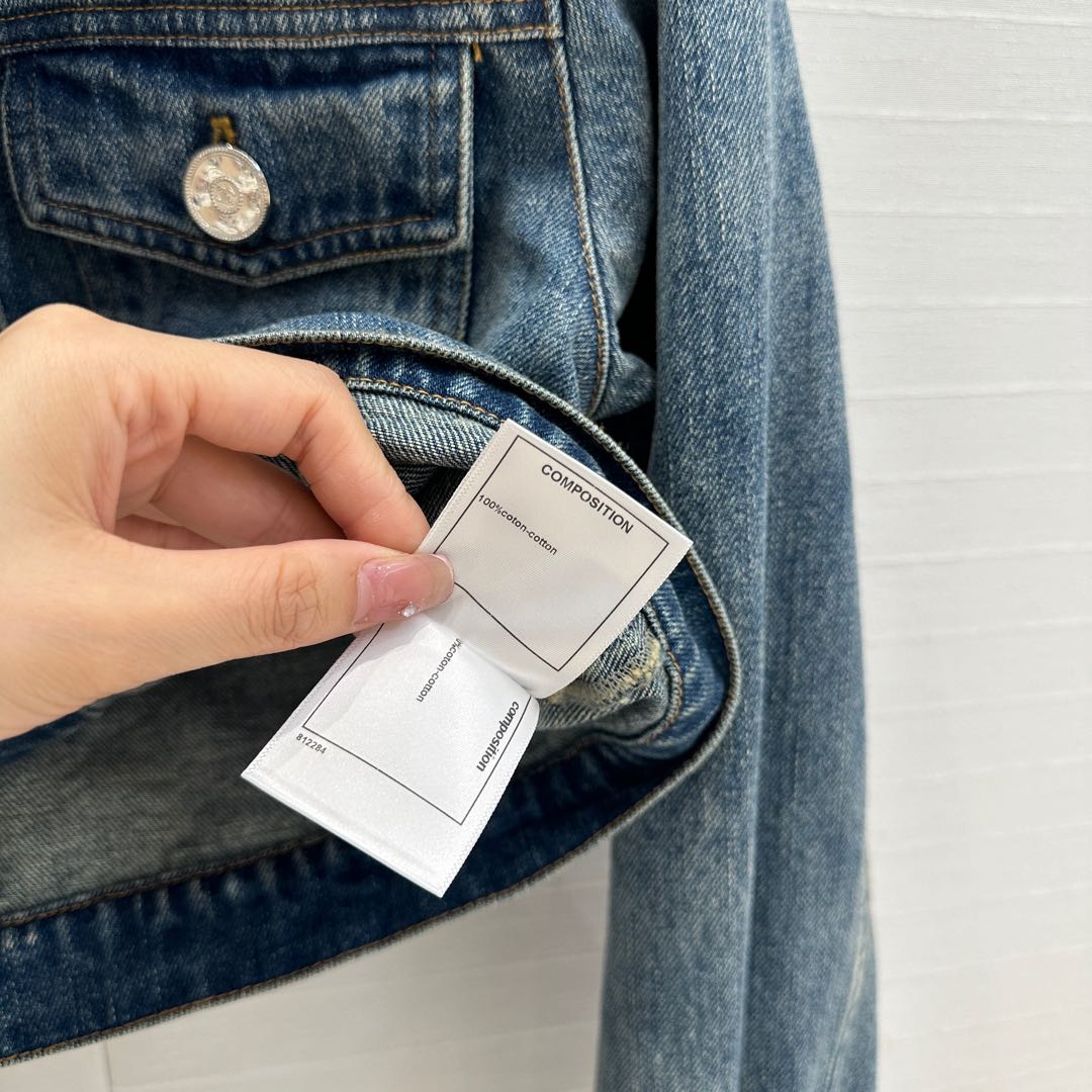 CC 25 Embroidered Vest Jacket Blue Denim Cotton